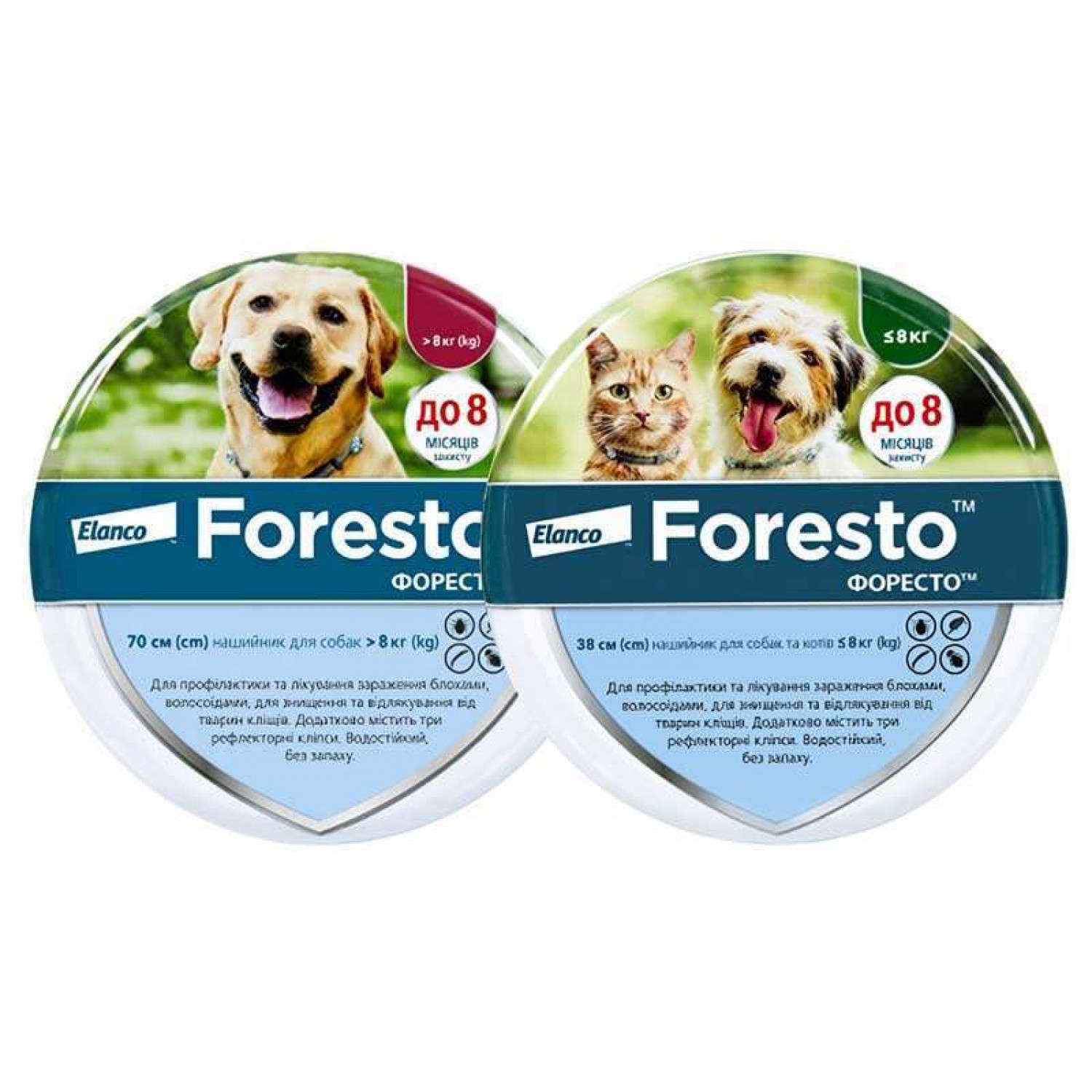 Нашийник Форесто призначений для знищення ектопаразитів (воші, блохи, власоїди) та іксодових кліщів, що паразитують на собаках, а також для захисту тварин від їх нападу.