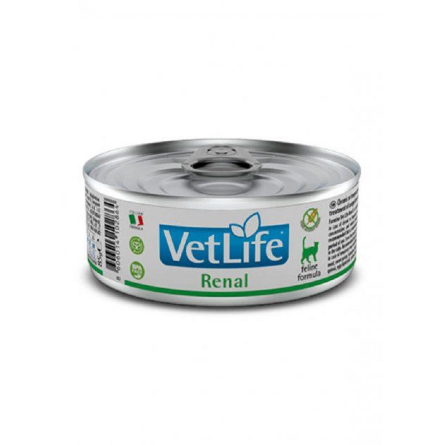 Farmina Vet Life Renal - повнораціонний дієтичний вологий корм для котів, розроблений для підтримки функції нирок при нирковій недостатності. Дієта містить низьку кількість фосфору та обмежену кількість білка високої біологічної цінності. Також є допоміжним засобом для лікування застійної серцевої недостатності.