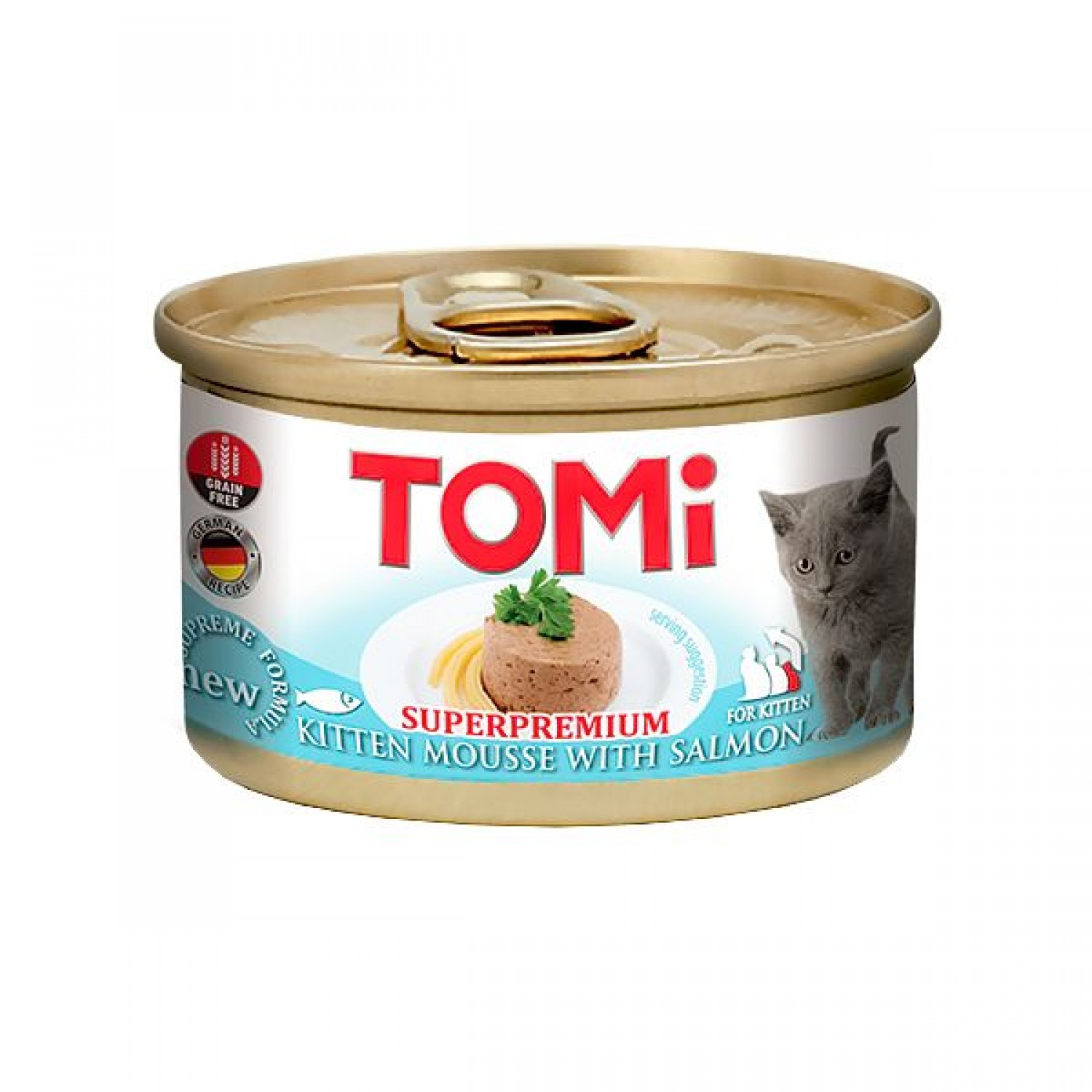 Консерви для кошенят TOMi Kitten with Salmon - це ніжний мус з чудовим поєднанням м’яса та риби, приготований за високими кулінарними стандартами. Має чудовий смак та приємний аромат. Мус максимально збалансований за вмістом вітамінів і мінералів для повноцінного росту і розвитку кошеня, що підростає.
