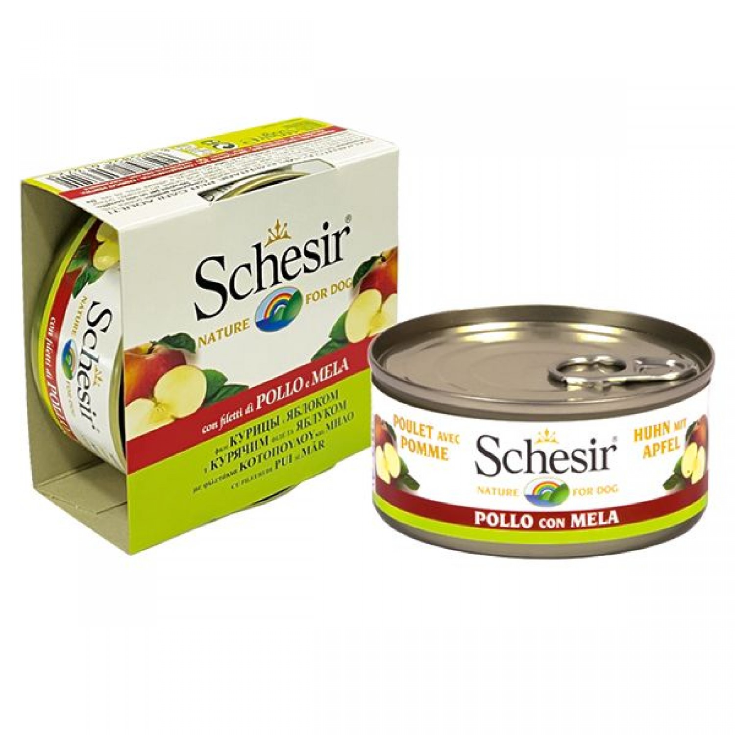 Schesir Chicken with Apple вологий корм для дорослих собак з куркою та яблуком в желе.