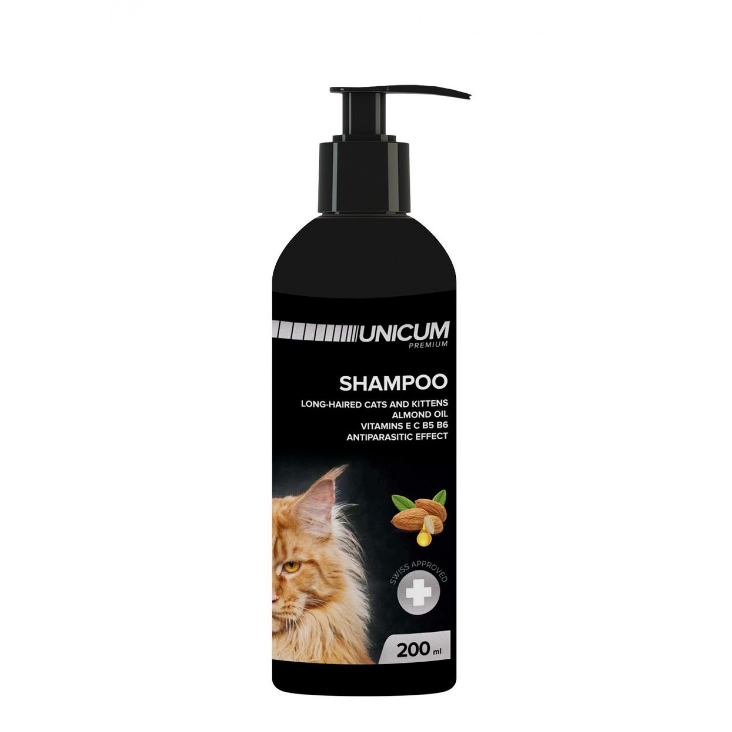 Шампунь UNICUM premium з мигдальним маслом призначений для гігієнічного догляду за довгошерстих котами та кошенятами.