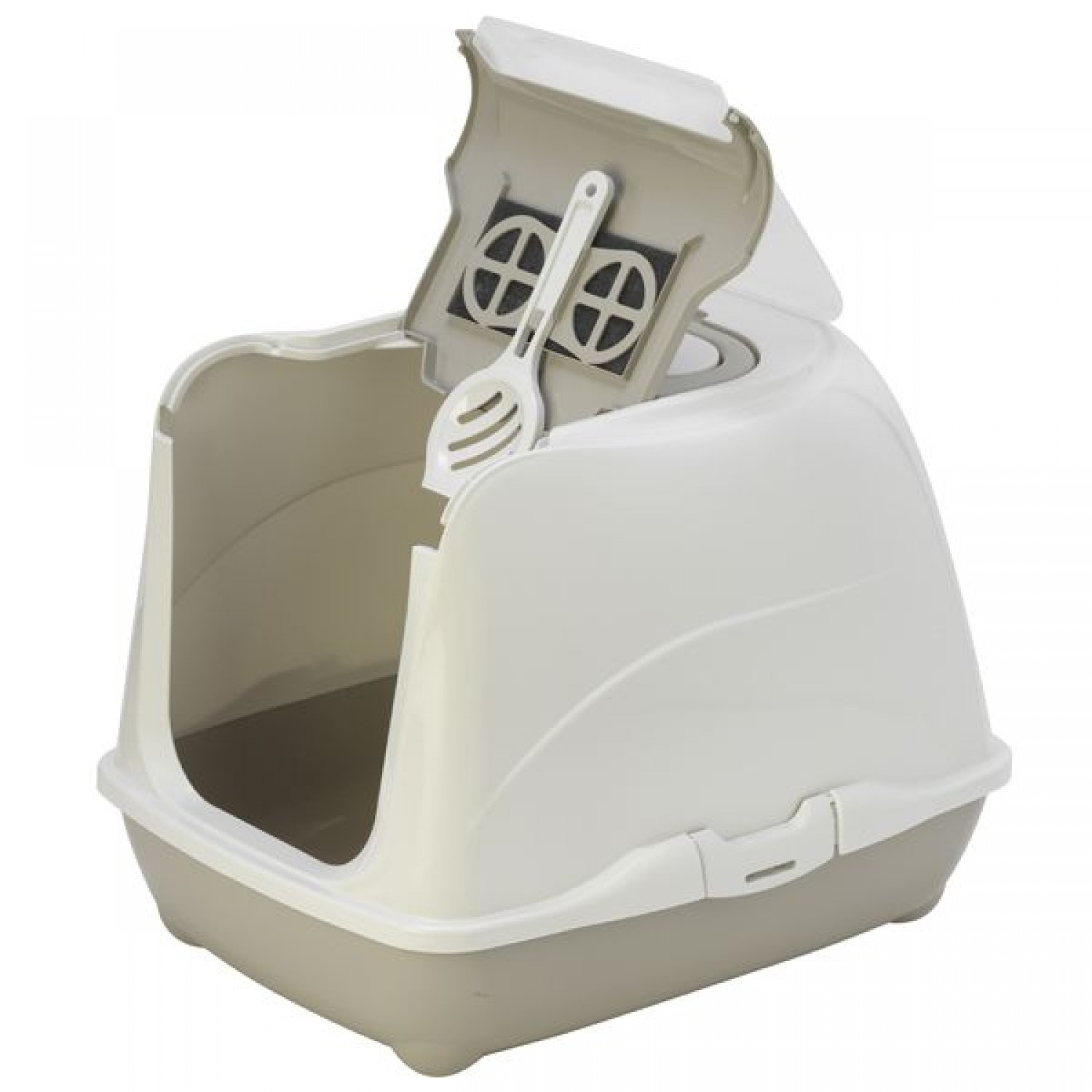 Moderna закритий туалет для котів з відкидною кришкою (сірий/білий).