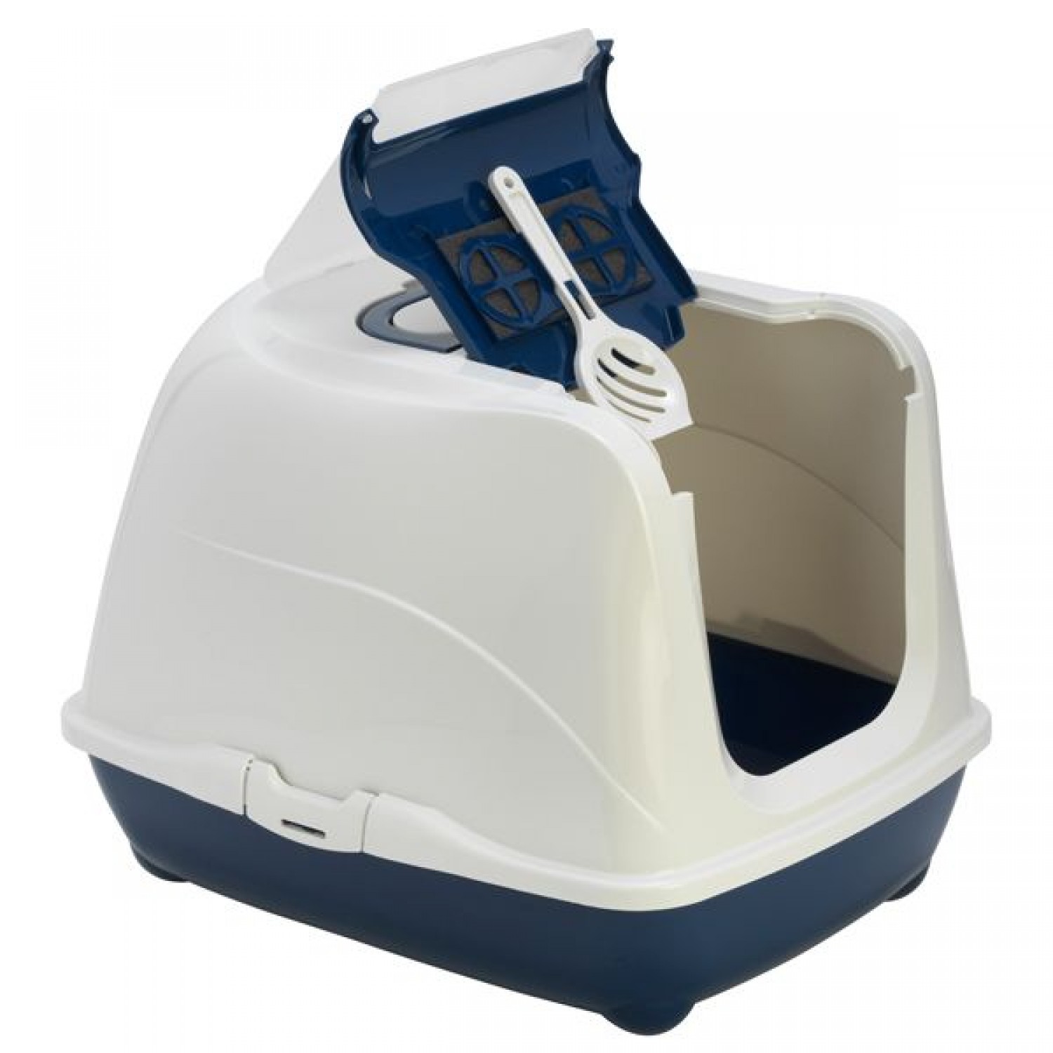 - в комплект входить совок для наповнювача, який зручно ховається у верхній кришці туалету в спеціальному відсіку.