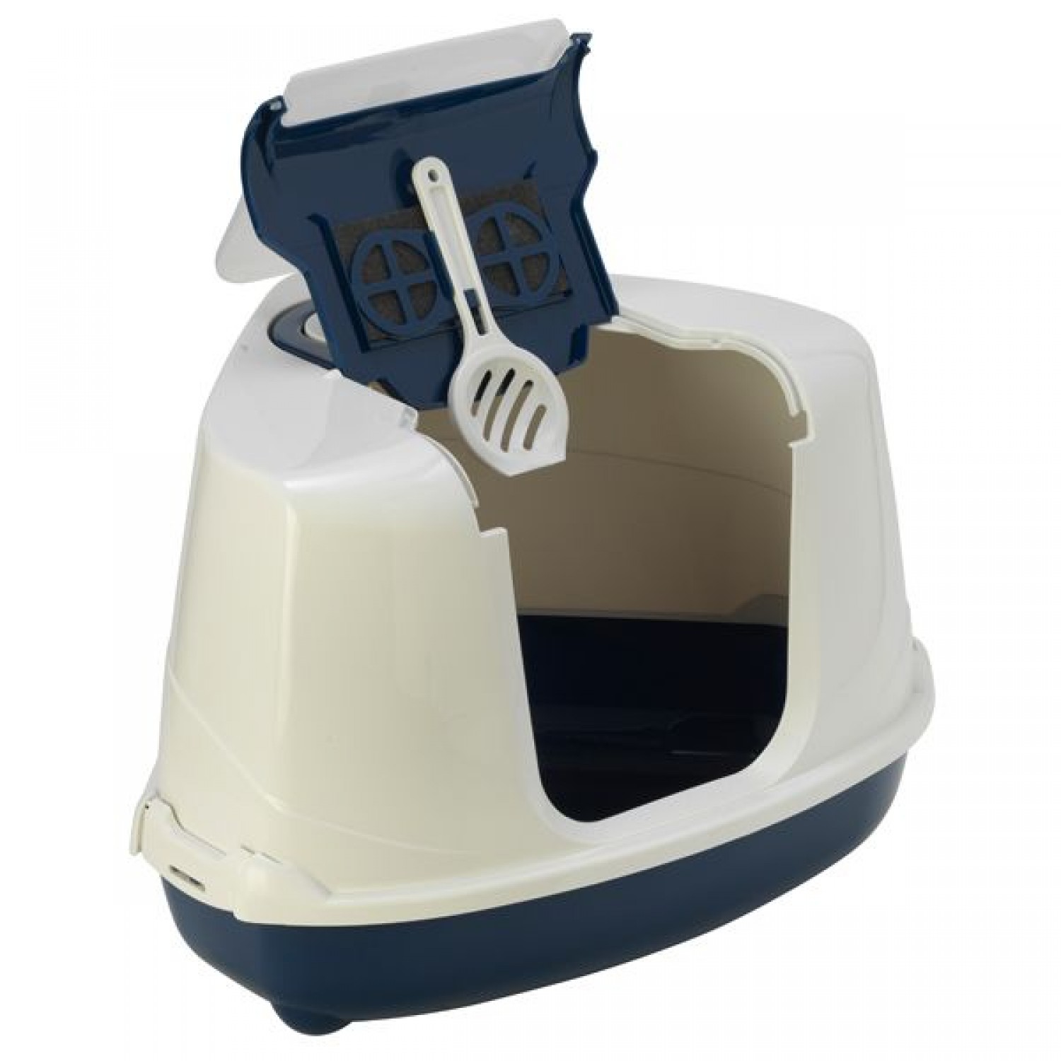 Moderna закритий кутовий туалет для котів (чорничний/білий).