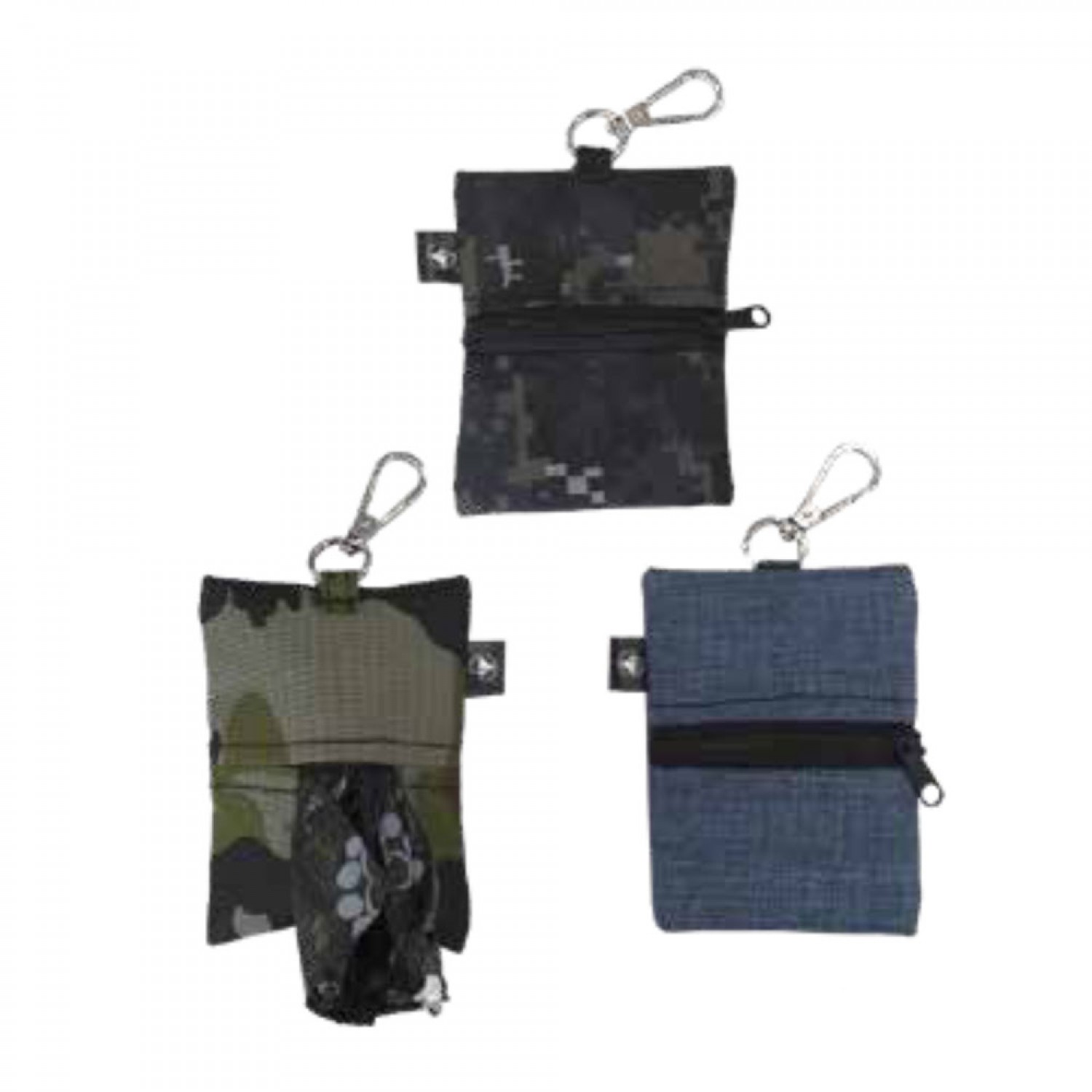 Міні-сумка для гігієнічних пакетів для собак Easy Go виготовлена з м'якого поліестеру трьох кольорів: темно-сірого, синього та камуфляжного. Маленька сумка оснащена кишенею, що закривається на зручну блискавку, в яку міститься рулон собачих гігієнічних пакетів або навіть дрібні предмети. Після того, як рулон вставлений, їх можна зручно витягати один за одним у міру потреби. Дозатор є невеликим аксесуаром розміром 10х8 см, який надзвичайно корисний для власників, які часто забувають вдома гігієнічні пакети для собак.