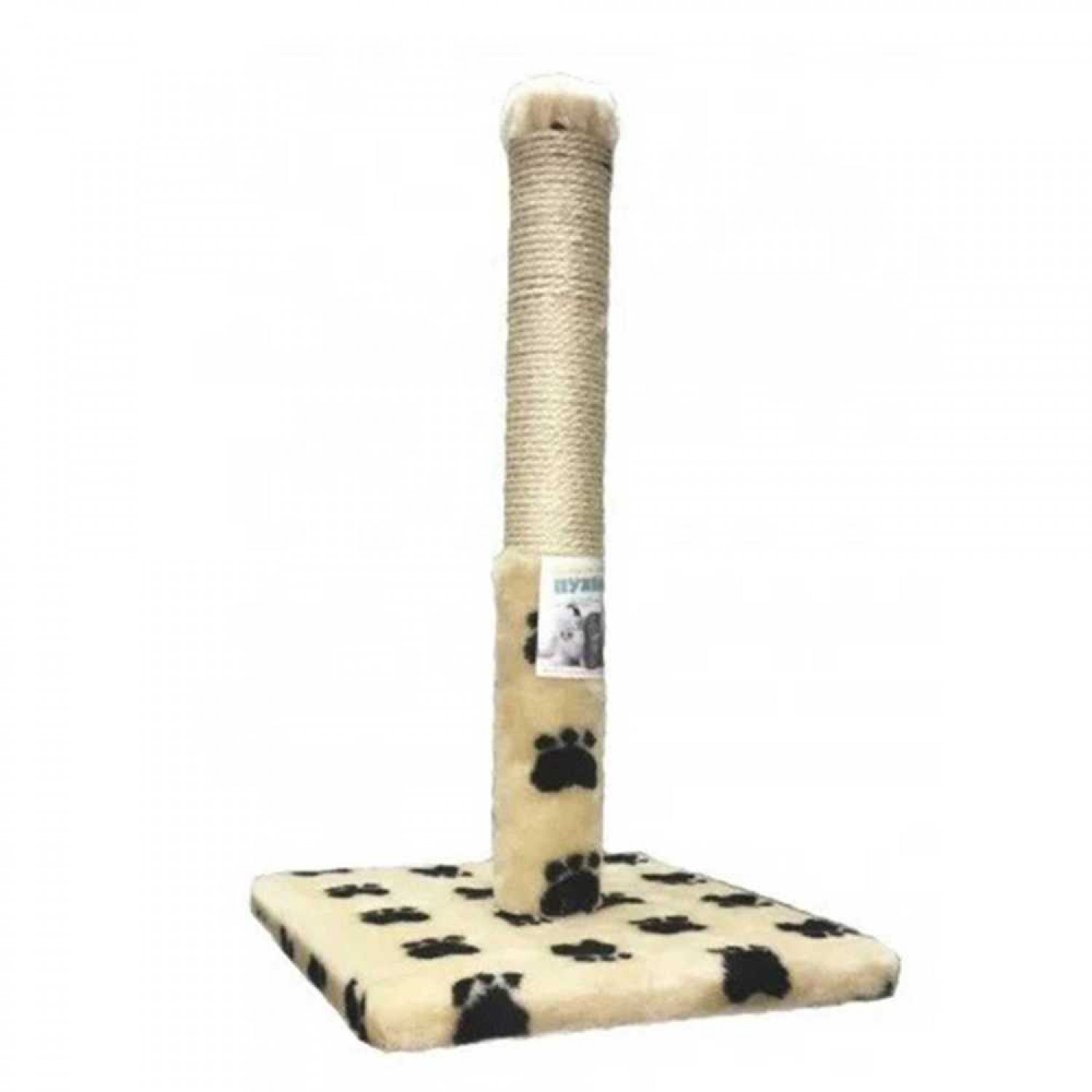 Пухнастики кігтеточка для котів стовпчик на підставці (джут) бежева з лапками.