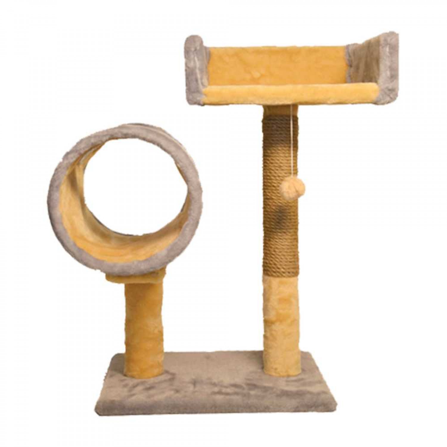 Пухнастики кігтеточка для котів з диваном і тунелем (джут) сіра з бежевим.
