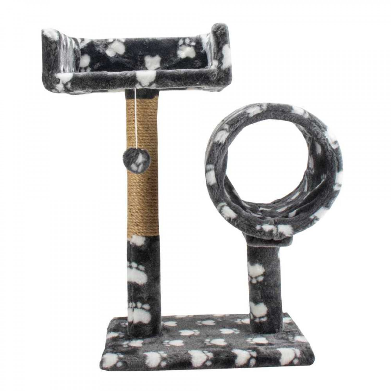 Пухнастики кігтеточка для котів з диваном і тунелем (джут) сіра з лапками.