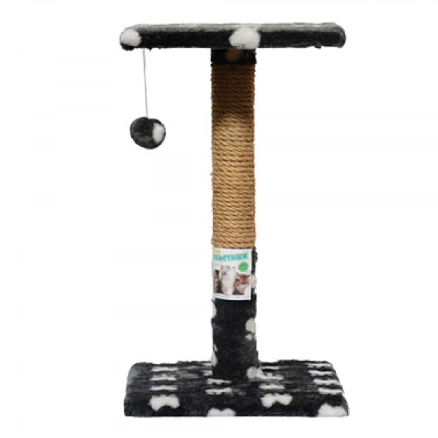 Пухнастики кігтеточка для котів стовпчик з полицею (джут) сіра з лапками.