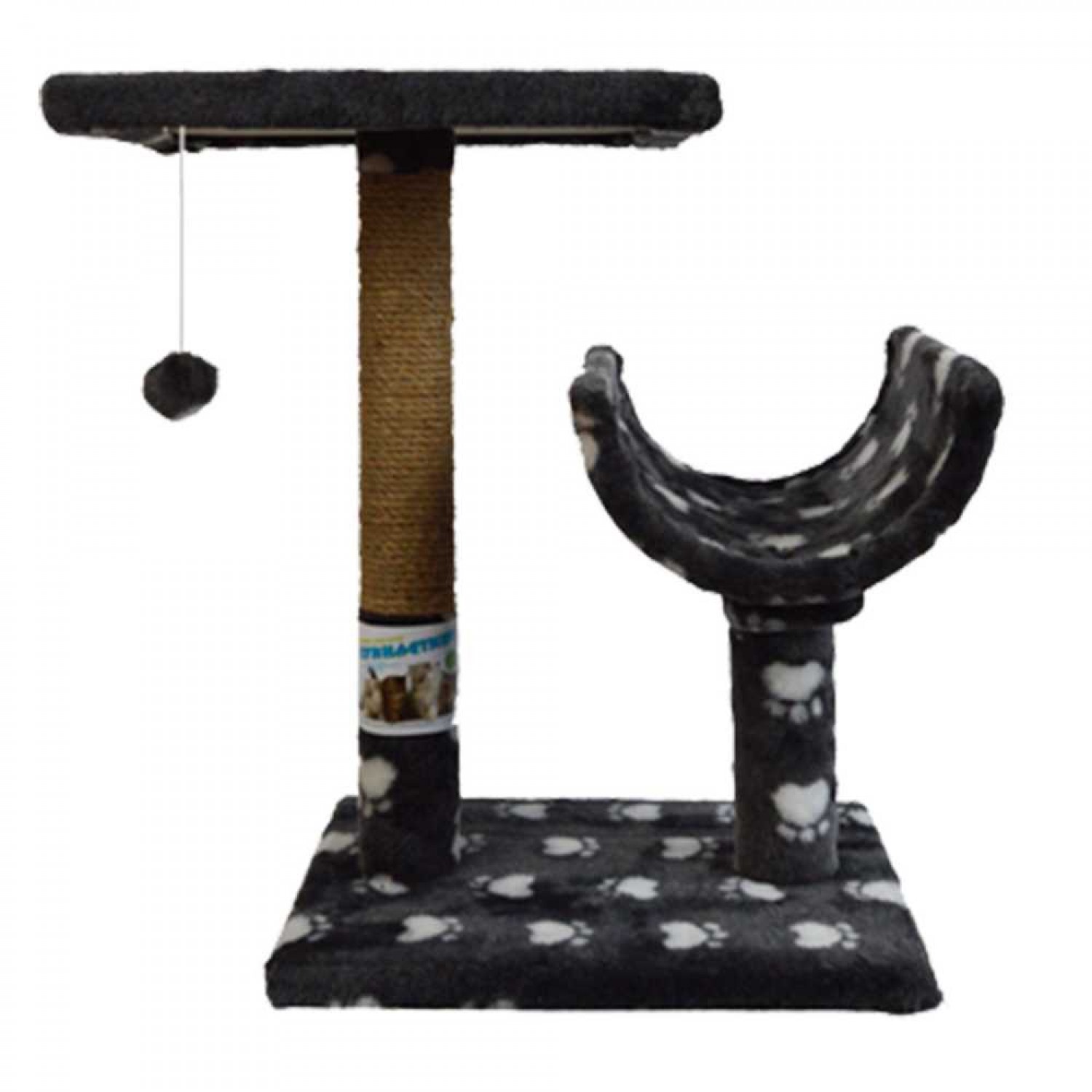 Пухнастики кігтеточка для котів з полицею і напівтунелем (джут) сіра з лапками.