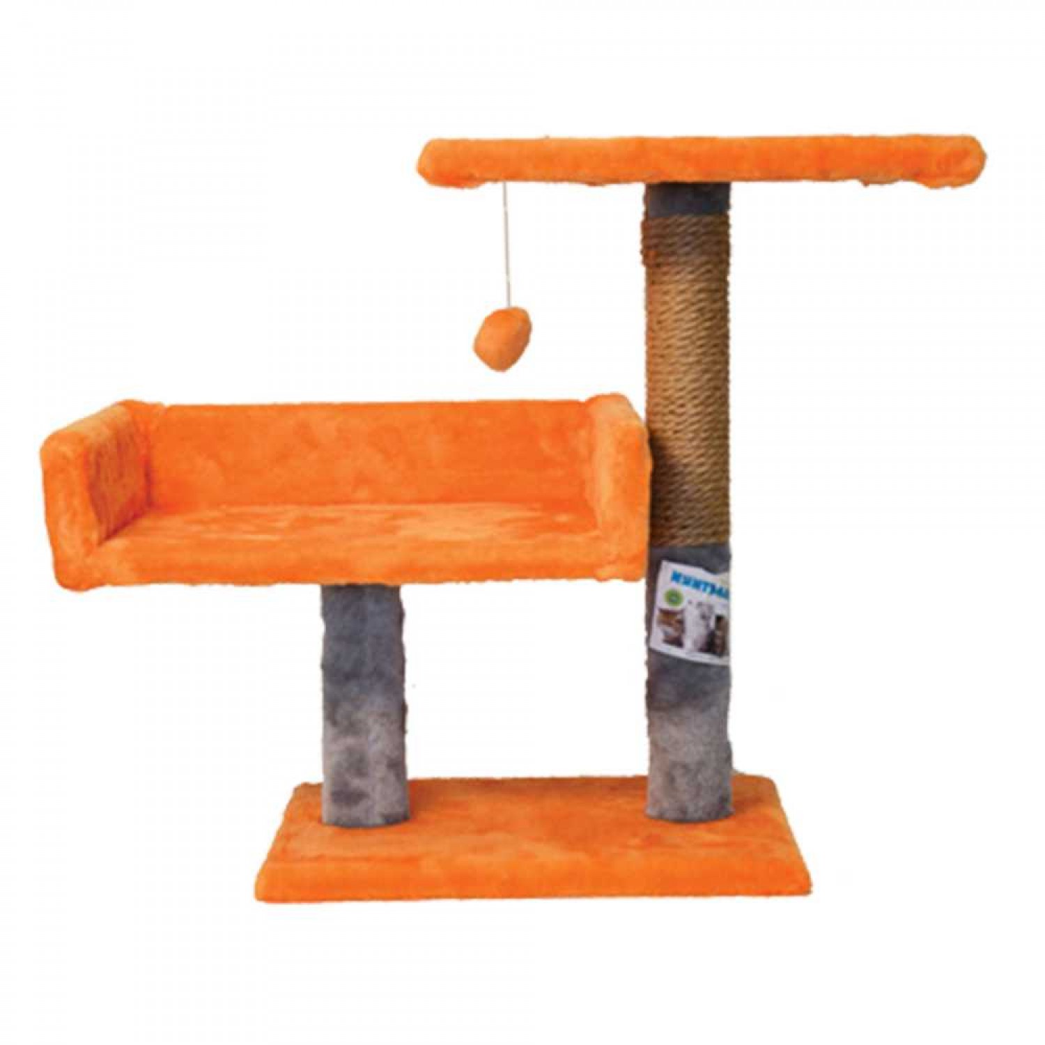 Пухнастики кігтеточка для котів з диваном і полицею (джут) руда з сірим.