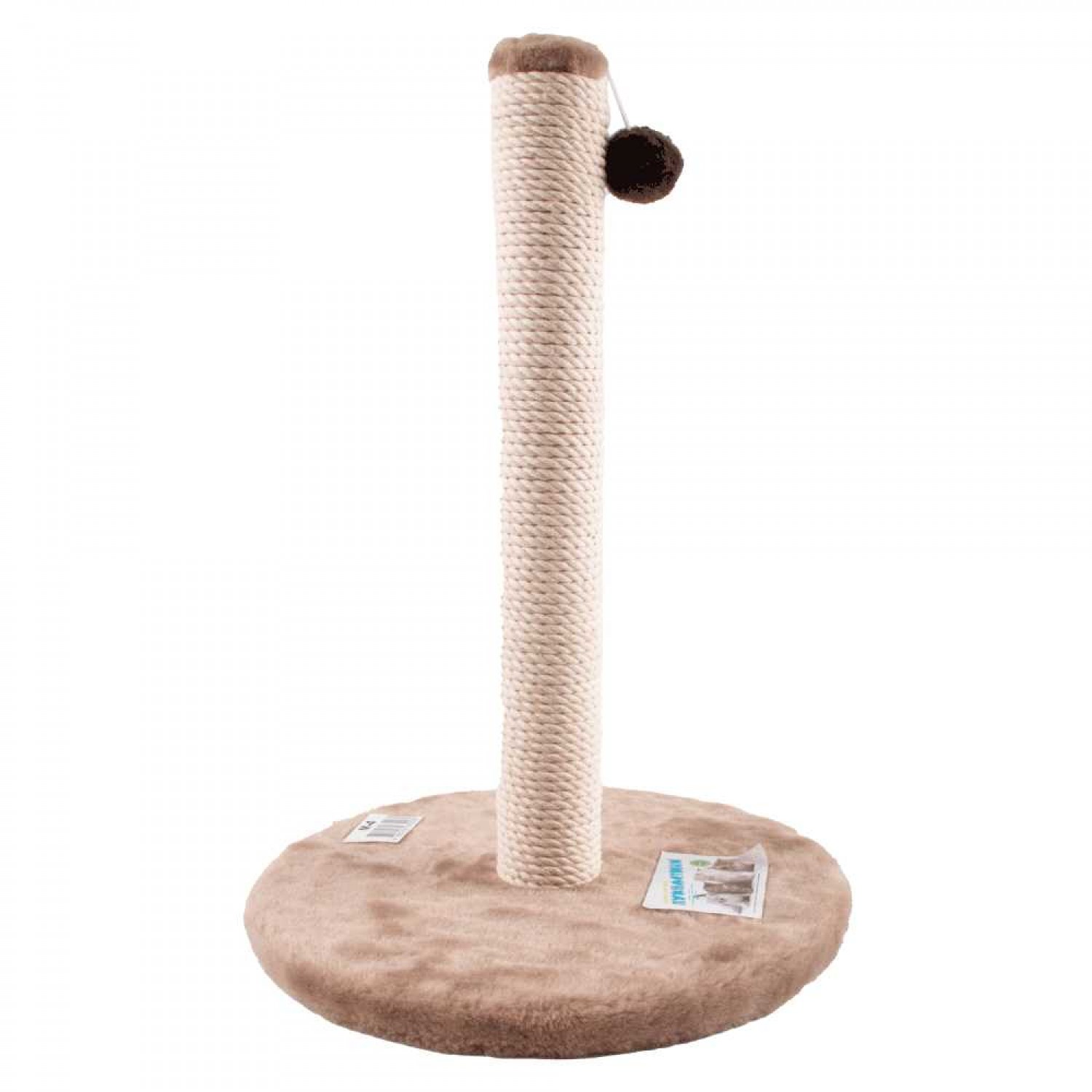 Пухнастики кігтеточка для котів стовпчик на круглій підставці (бавовняна стрічка) бежева.