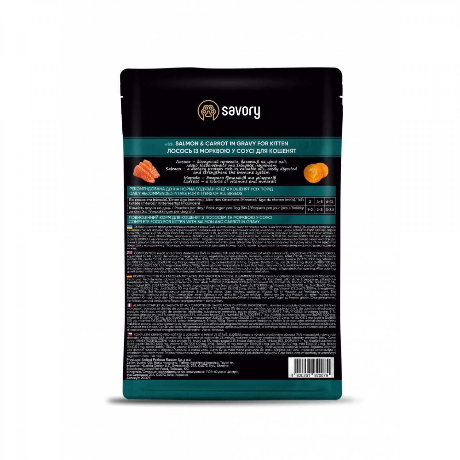 Savory Kitten Pouch with Salmon & Carrot in Gravy вологий корм для кошенят з лососем та морквою.