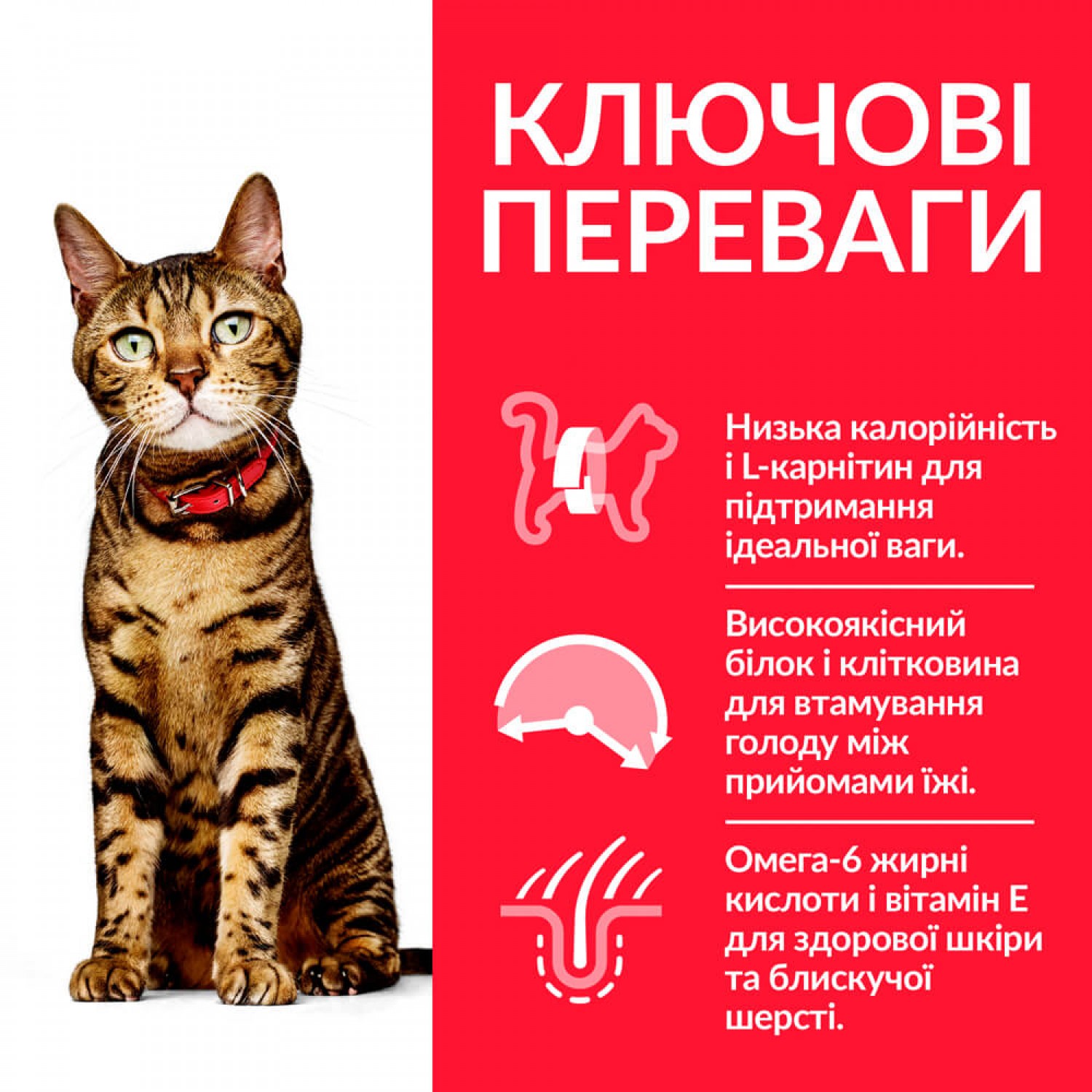 Сухий корм Hill's Science Plan Light Adult рекомендований для дорослих котів віком від 1 року, що схильні до набору ваги або які страждають на ожиріння легкого ступеня (тобто для котів менш активних, стерилізованих/кастрованих або схильних до набору ваги з інших причин).