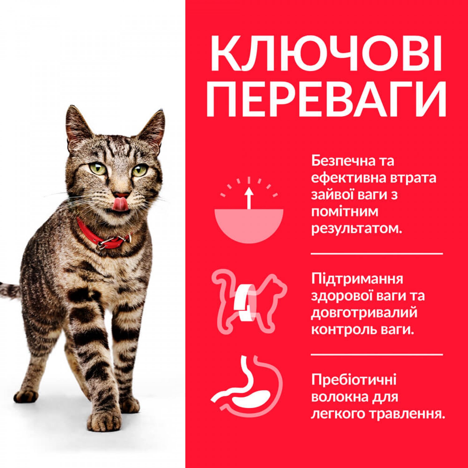 - Клінічно доведений контроль ваги з помітними результатами для котів: допоможе коту схуднути й надалі підтримувати здорову вагу.