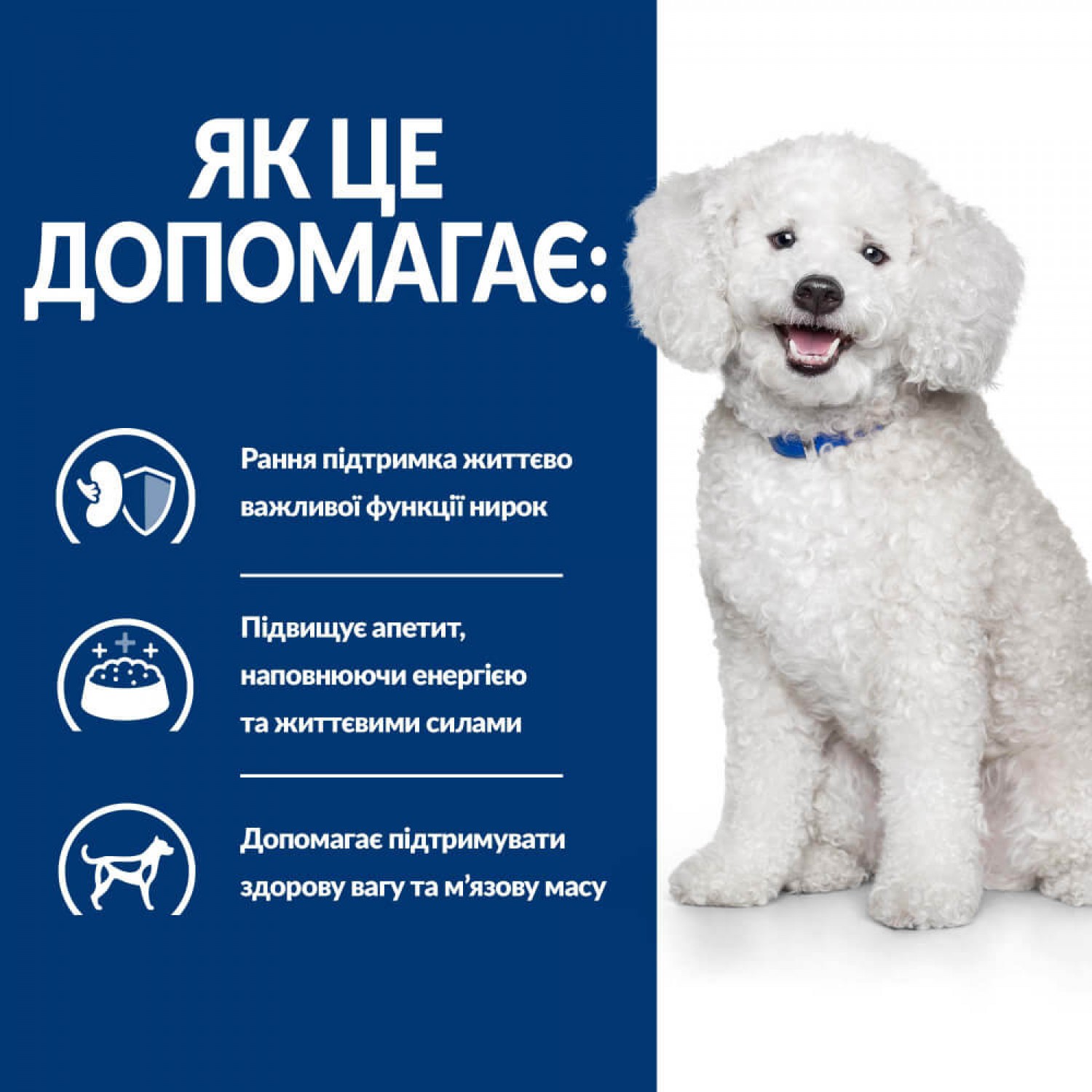 - Підходить як пожиттєвий раціон для собак із хворобою нирок ранніх стадій.