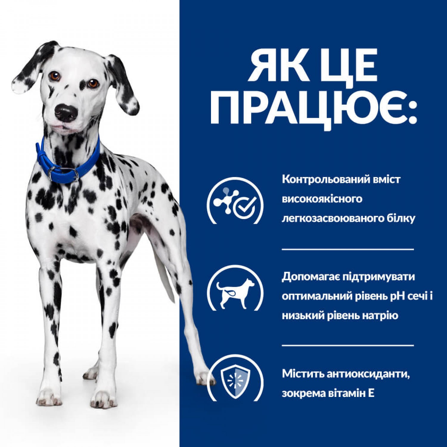 Сухий корм для собак Hill’s Prescription Diet u/d - повнораціонне дієтичне харчування Hill's Prescription Diet u/d, спеціально розроблене дієтологами та ветеринарними лікарями, призначене для собак, в чиєму організмі утворюються уратні чи цистинові уроліти (камені в сечовивідних шляхах, частіше в сечовому міхурі). Такі порушення проявляються різними ознаками, серед яких часте сечовипускання, кров у сечі, напруження під час сечовипускання та біль у животі. Деякі види каменів можна спочатку видалити фізично (часто оперативним втручанням), а потім дотримуватися правильного харчування, щоб зменшити ризик їхнього повторного утворення.