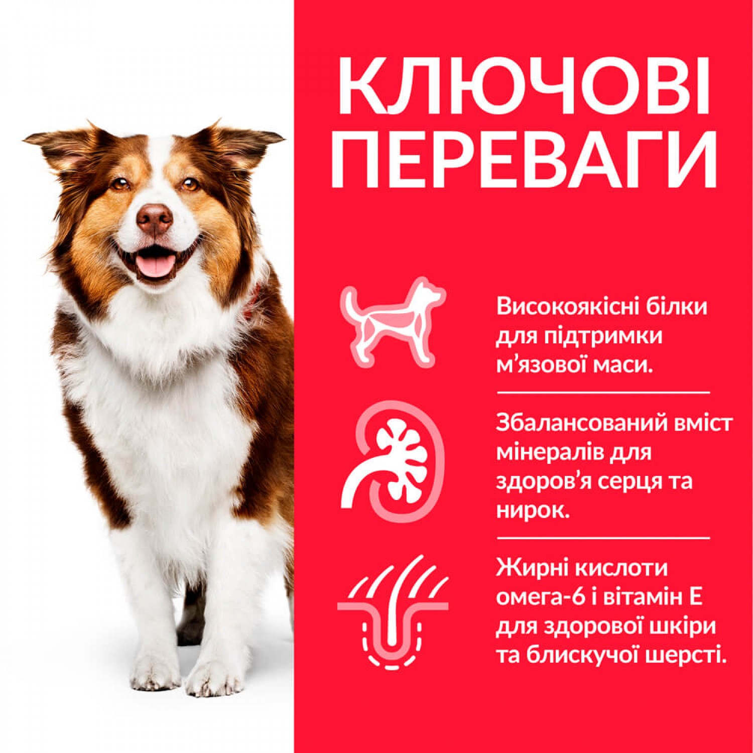 Собака в поважному віці потребує якісного харчування для гідного старіння. Повнораціонне харчування для собак середніх порід Hill's Science Plan підтримує рівень активності та здоров’я життєво важливих органів собак зрілого віку. Розроблене за спеціальною рецептурою і містить належно збалансований набір поживних речовин, які допомагають улюбленцю вести щасливе та здорове життя.