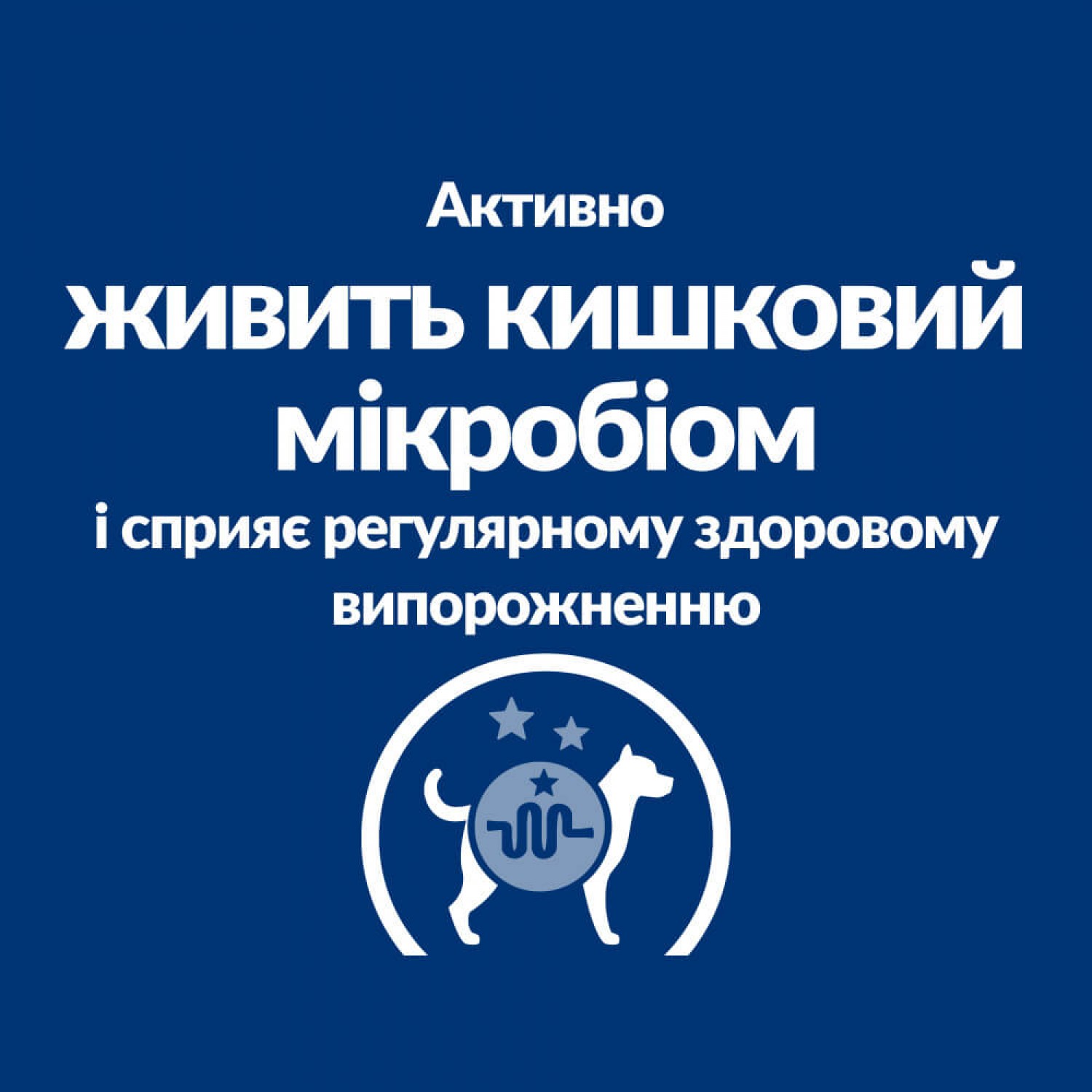 Вологий корм для собак Hill’s PRESCRIPTION DIET Gastrointestinal Biome - повнораціонне дієтичне харчування, спеціально розроблене дієтологами та ветеринарними лікарями для покращення травлення, якості й регулярності випорожнень і запобігання рецидивів шлунково-кишкових розладів. Корм із високим вмістом клітковини, що має клінічно доведену здатність протягом 24 годин сприяти переходу від діареї до сформованих випорожнень і знижувати ризик повторного виникнення діареї.
