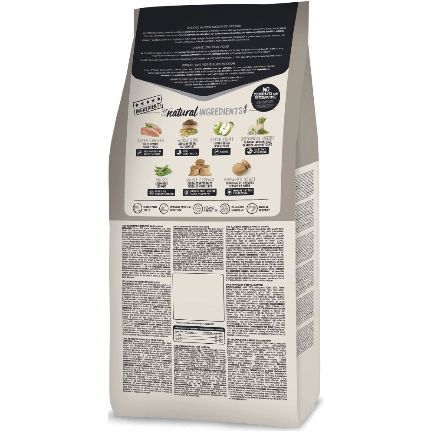 • Корм Ownat Classic Light створений для щоденного повнораціонного харчування дорослих котів, схильних до зайвої ваги.