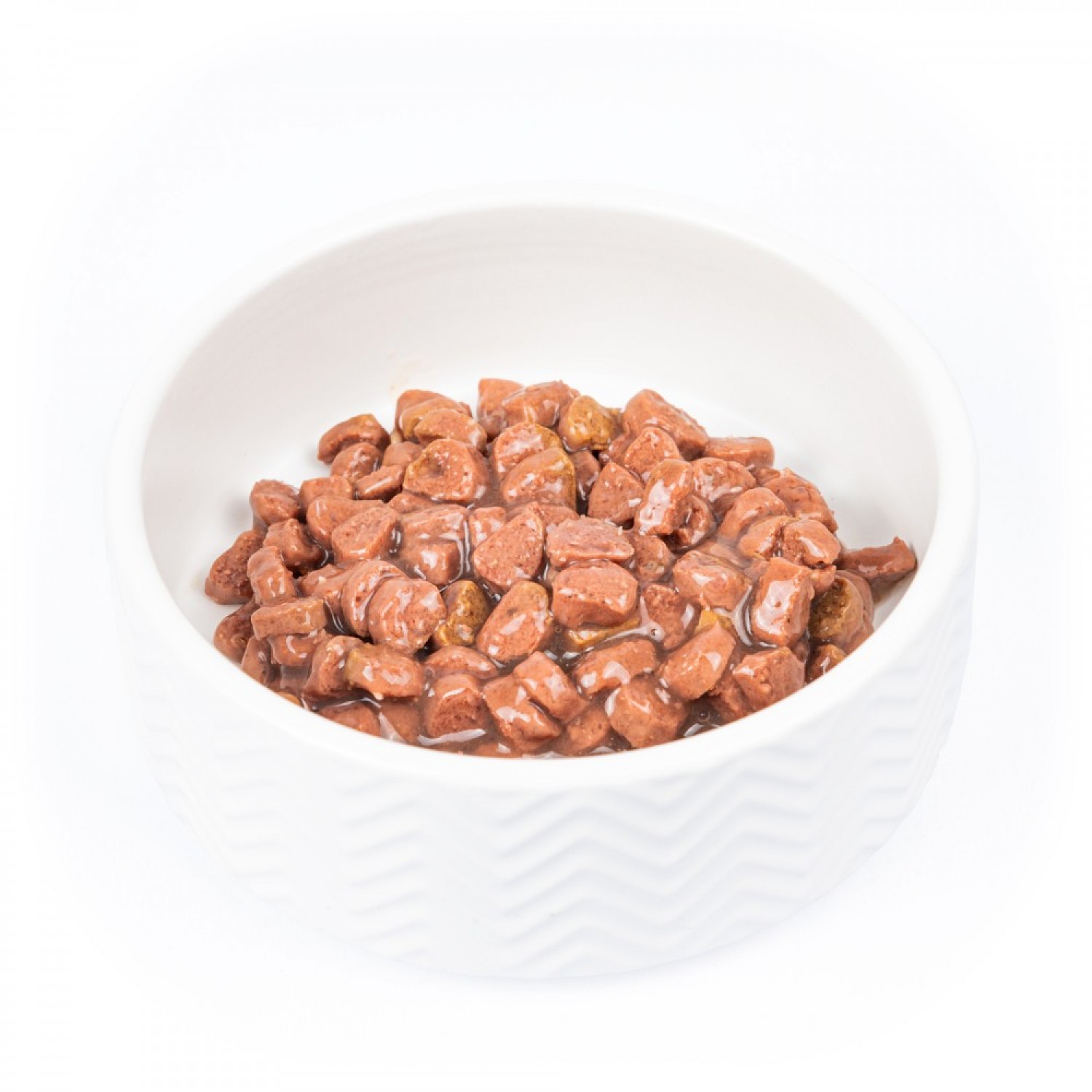 Смачний та ніжний соус ідеально підкреслює смак м'ясних шматочків, створюючи справжню гастрономічну насолоду для вашого улюбленця.