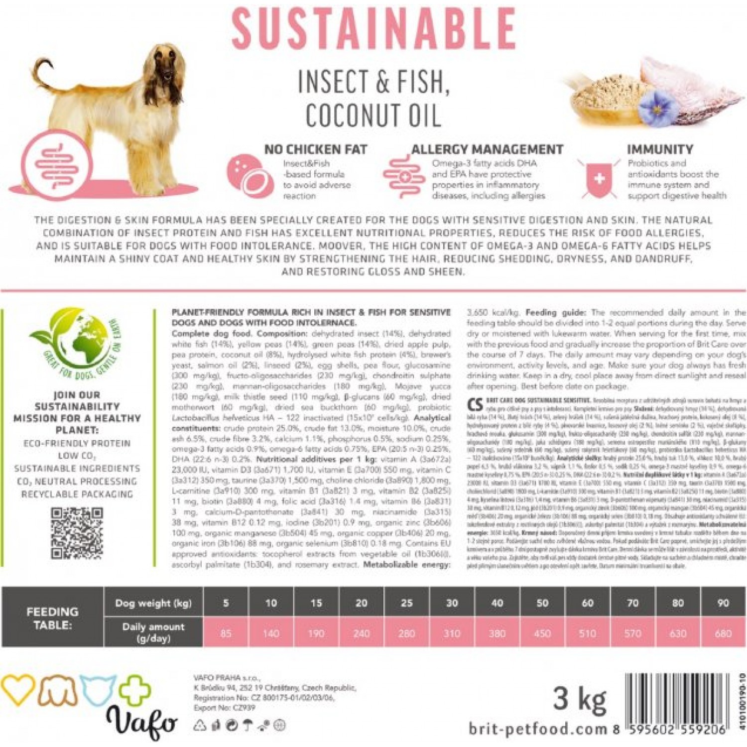 - Поєднання білка комах і риби має чудові поживні властивості, знижує ризик харчової алергії та підходить для собак з харчовою непереносимістю.