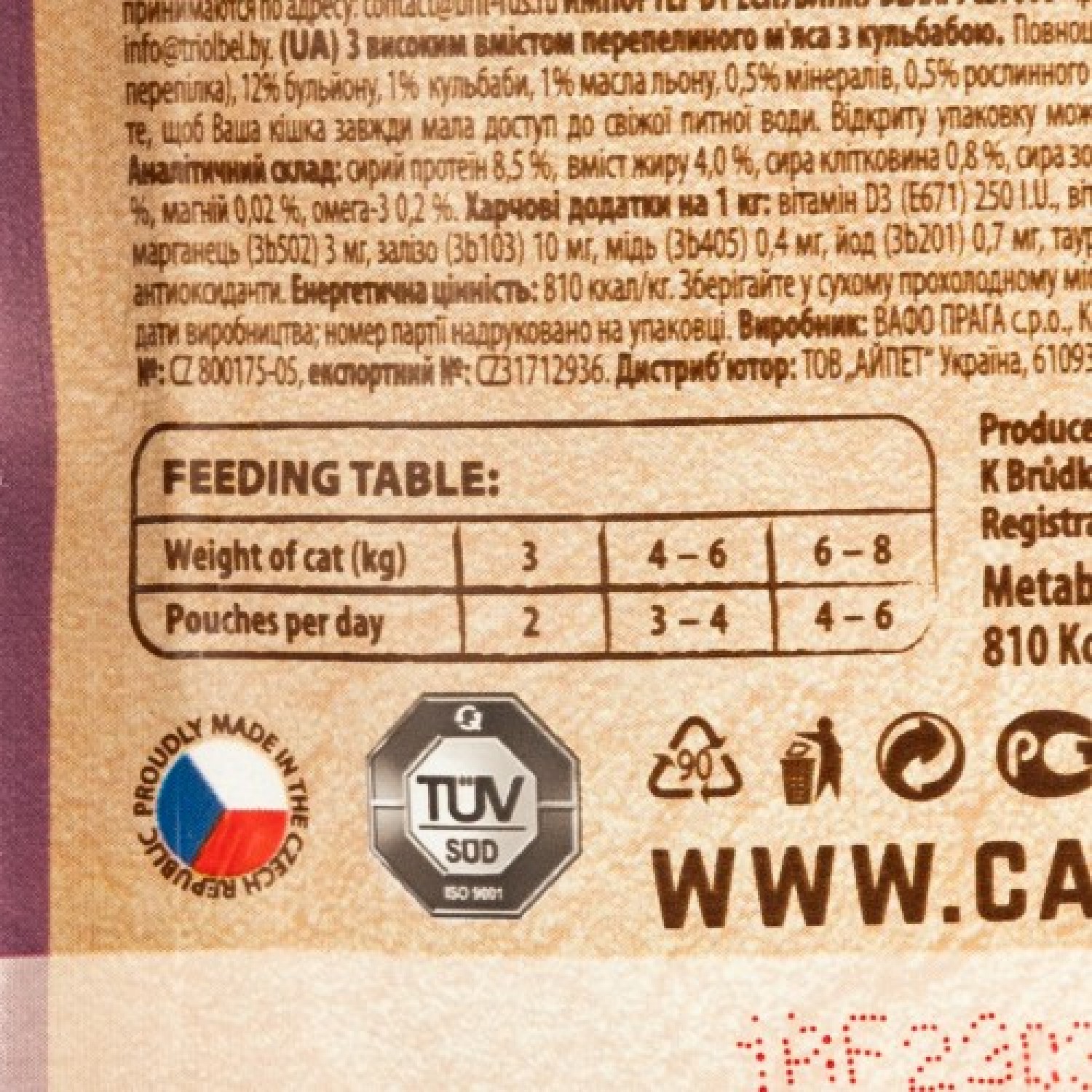 Carnilove Cat Pouch вологий корм для стерилізованих котів з перепілкою і кульбабою.