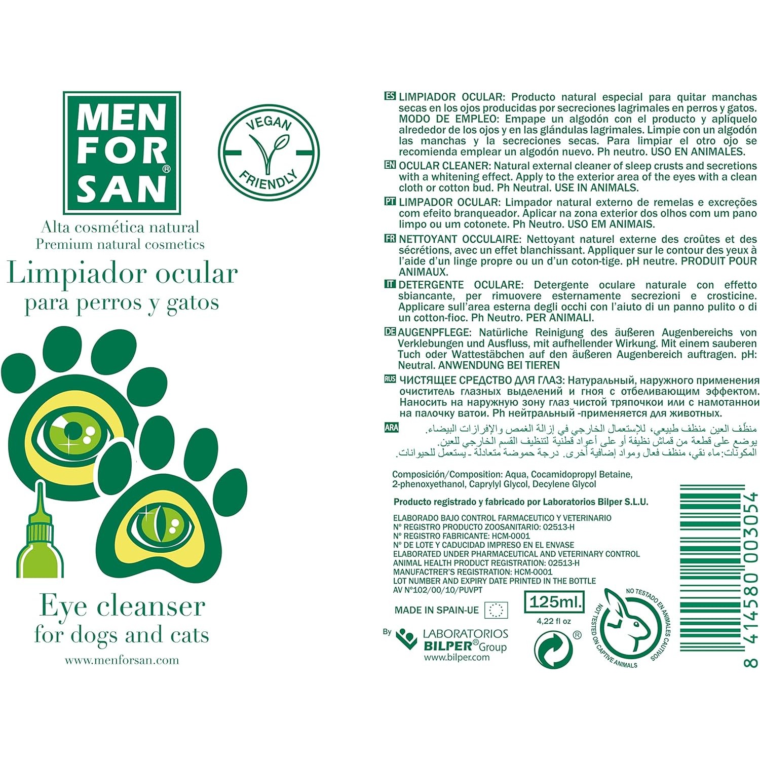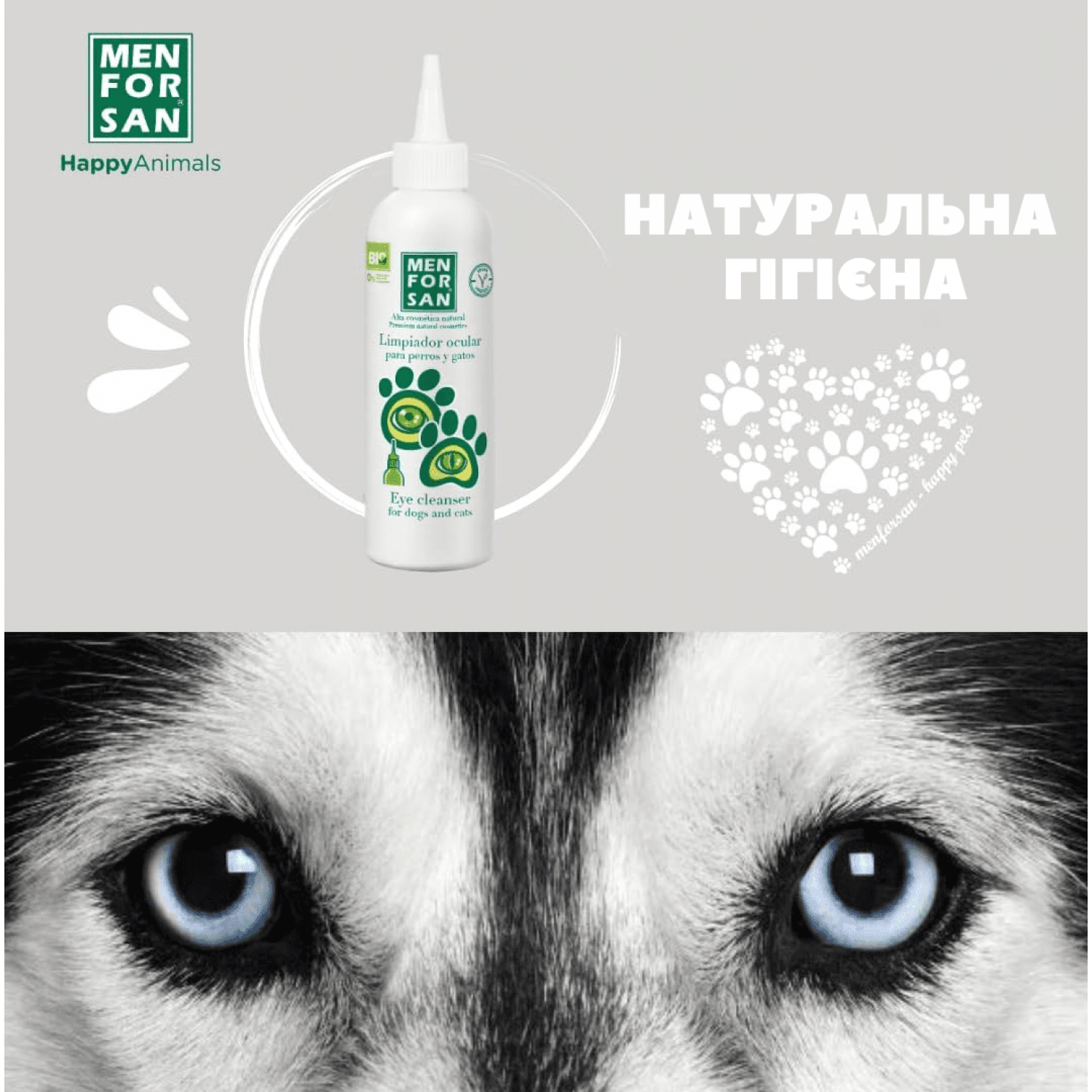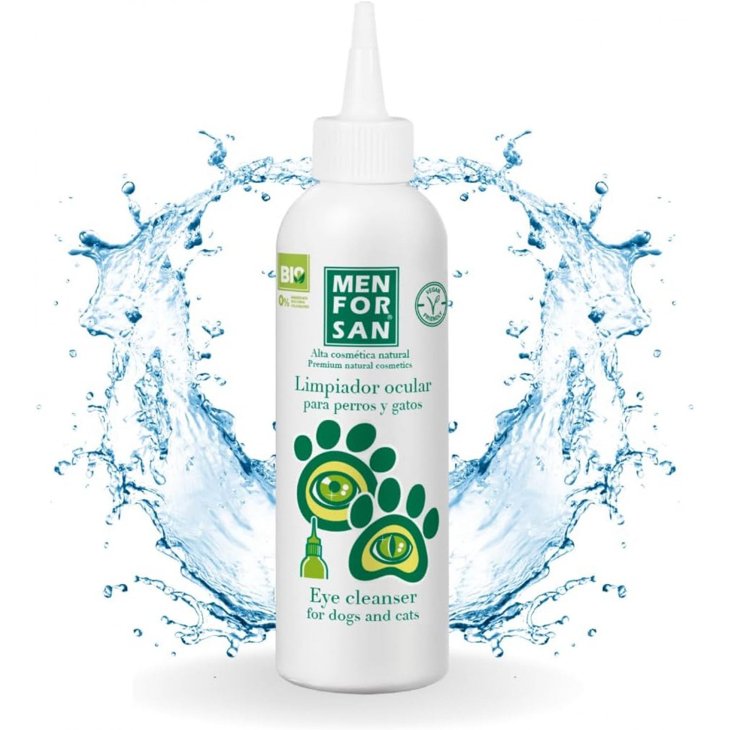 Спеціальний натуральний продукт для видалення сухих плям в очах, які утворилися слізними виділеннями у собак і котів. Цей засіб забезпечить бездоганну чистоту навколо очей і повік вашого вихованця. Усуває плями, які утворюються навколо очного кільця і в області слізних шляхів. Часте використання засобу дуже корисно для запобігання таких проблем з очима, як кон’юнктивіт.