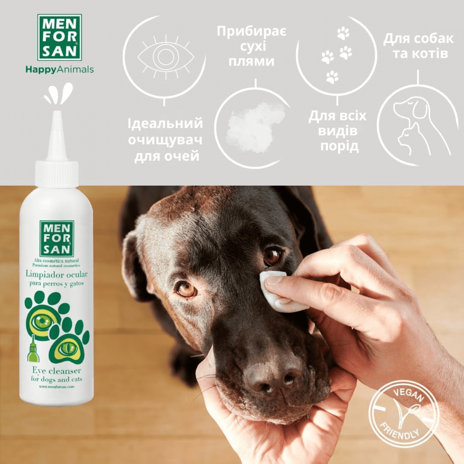 - Забезпечує бездоганну чистоту навколо очей і повік вашого вихованця.