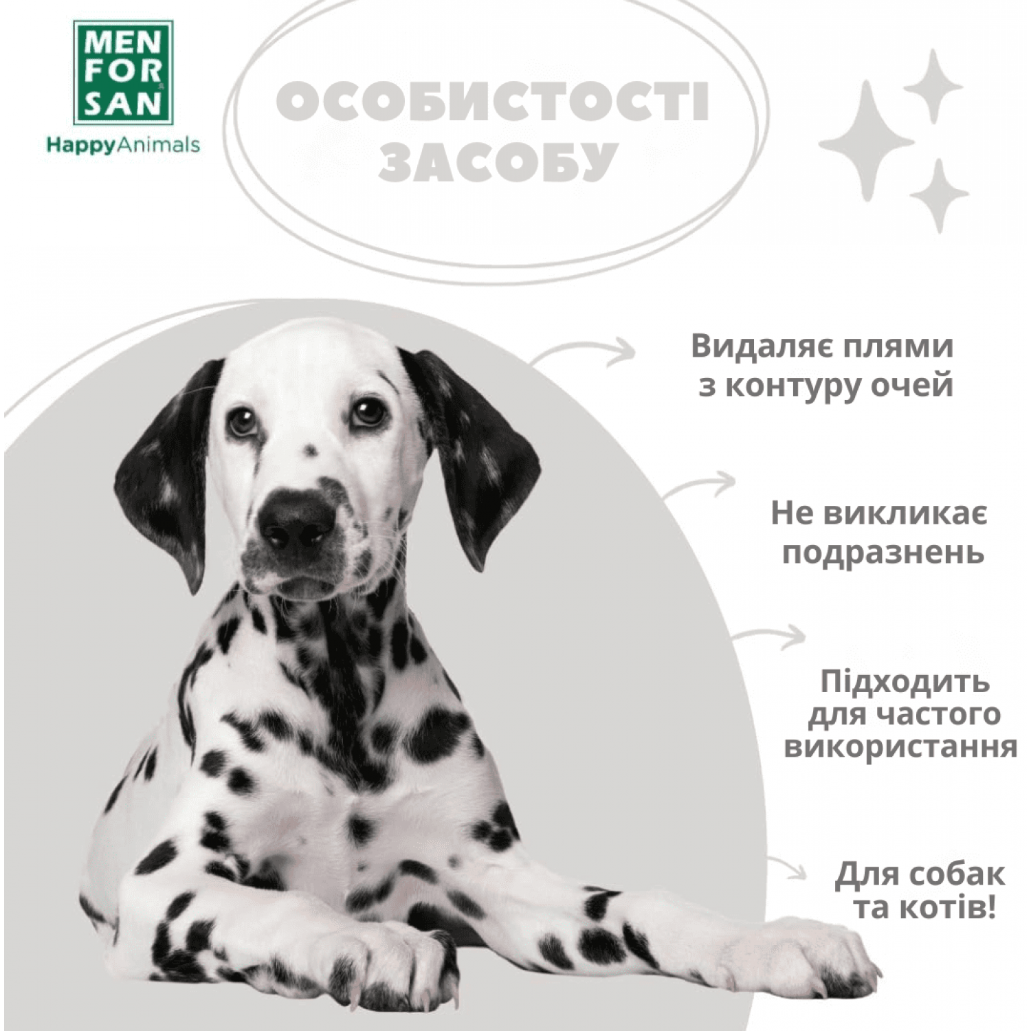 Рекомендується для собак з білим забарвленням шерсті, в особливо для пуделів, бішонів, а також для деяких порід кішок - (ангорських котів), які схильні до утворення коричневих плям навколо очей, які можна пом’якшити та зменшити за допомогою щоденного використання цього спеціального очищаючого засобу.