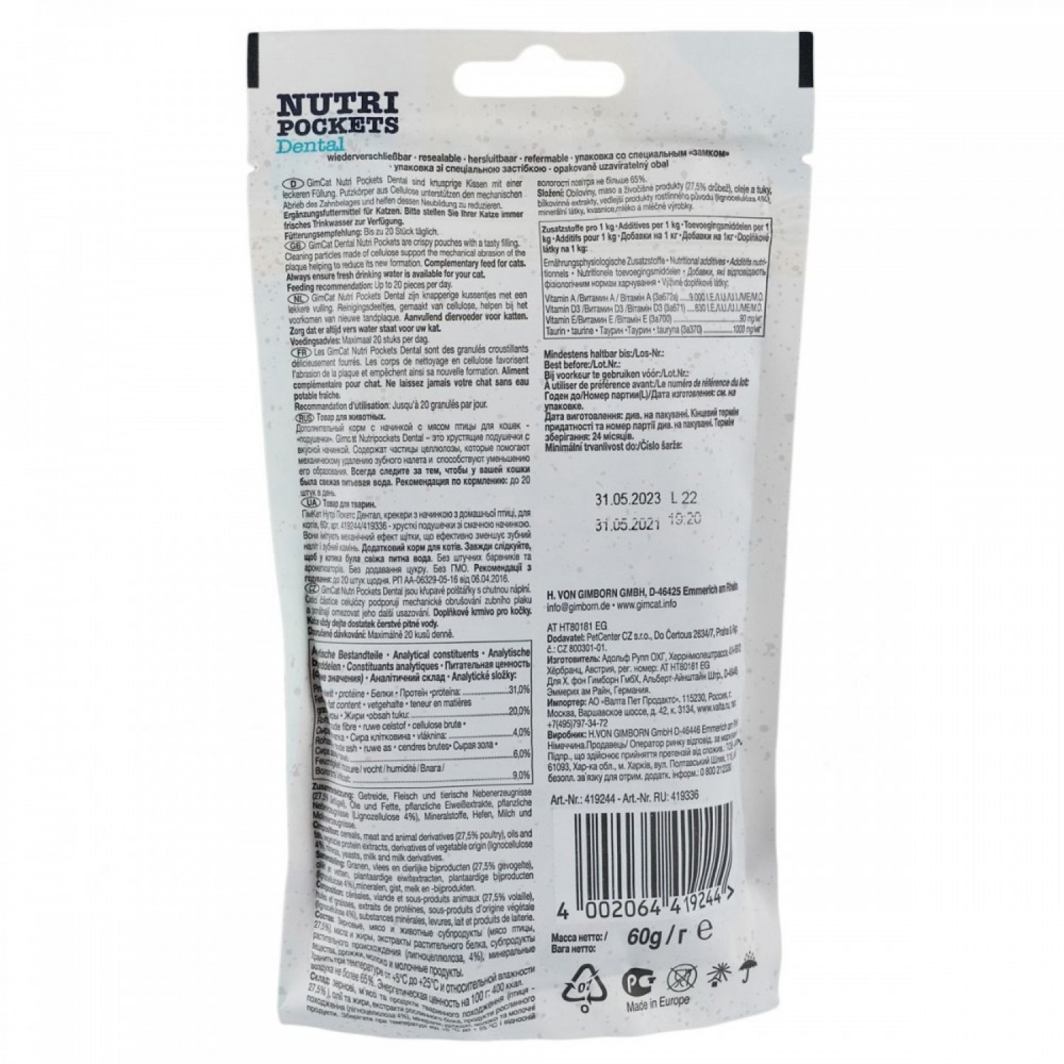 GimCat Nutri Pockets Dental подушечки для здоров'я зубів котів.