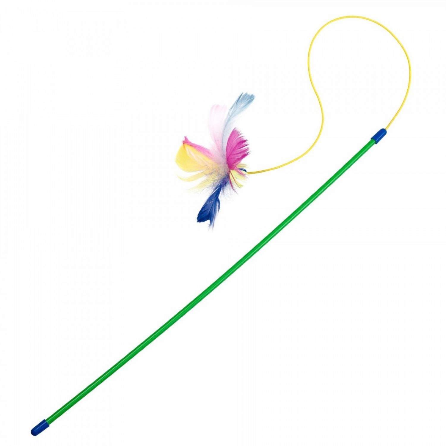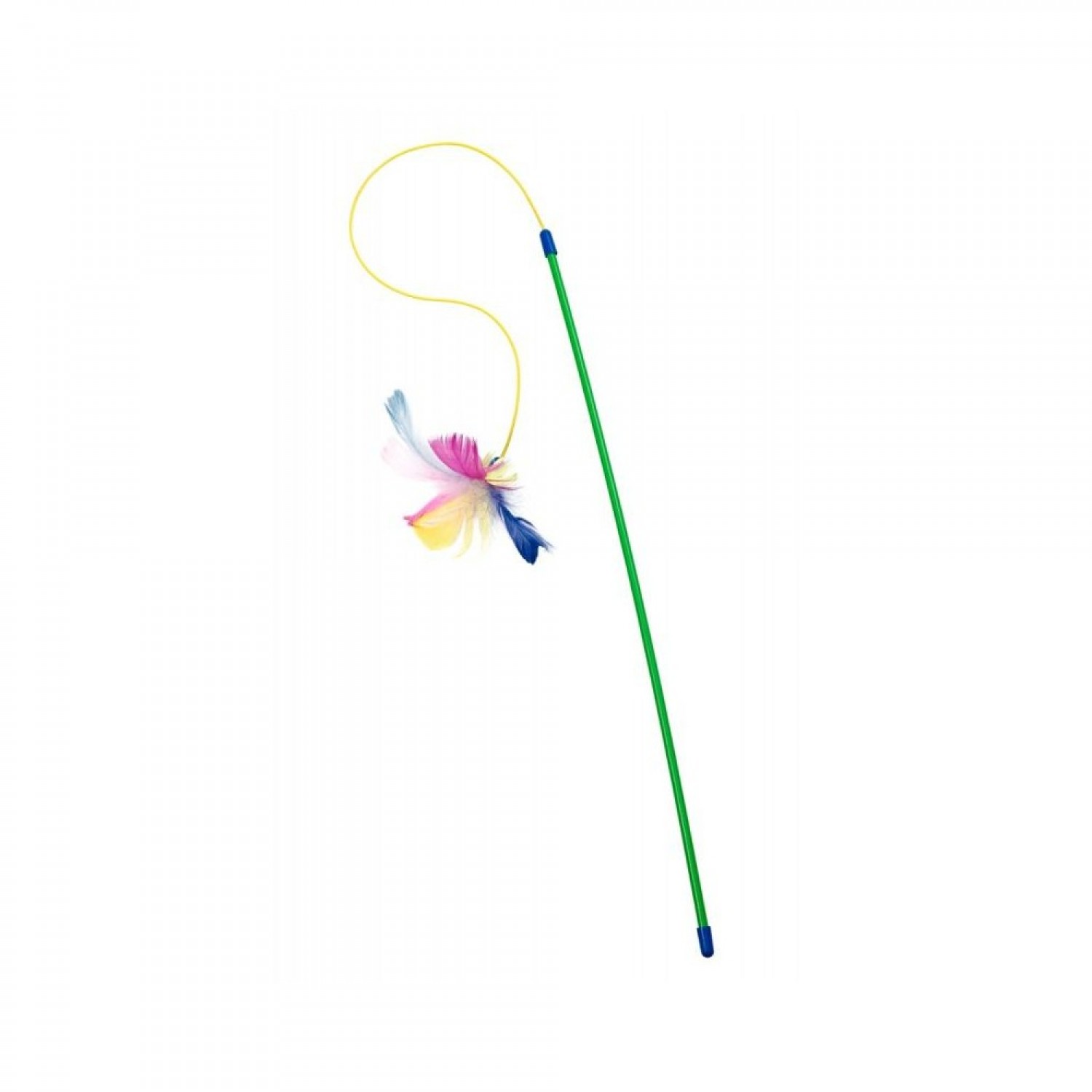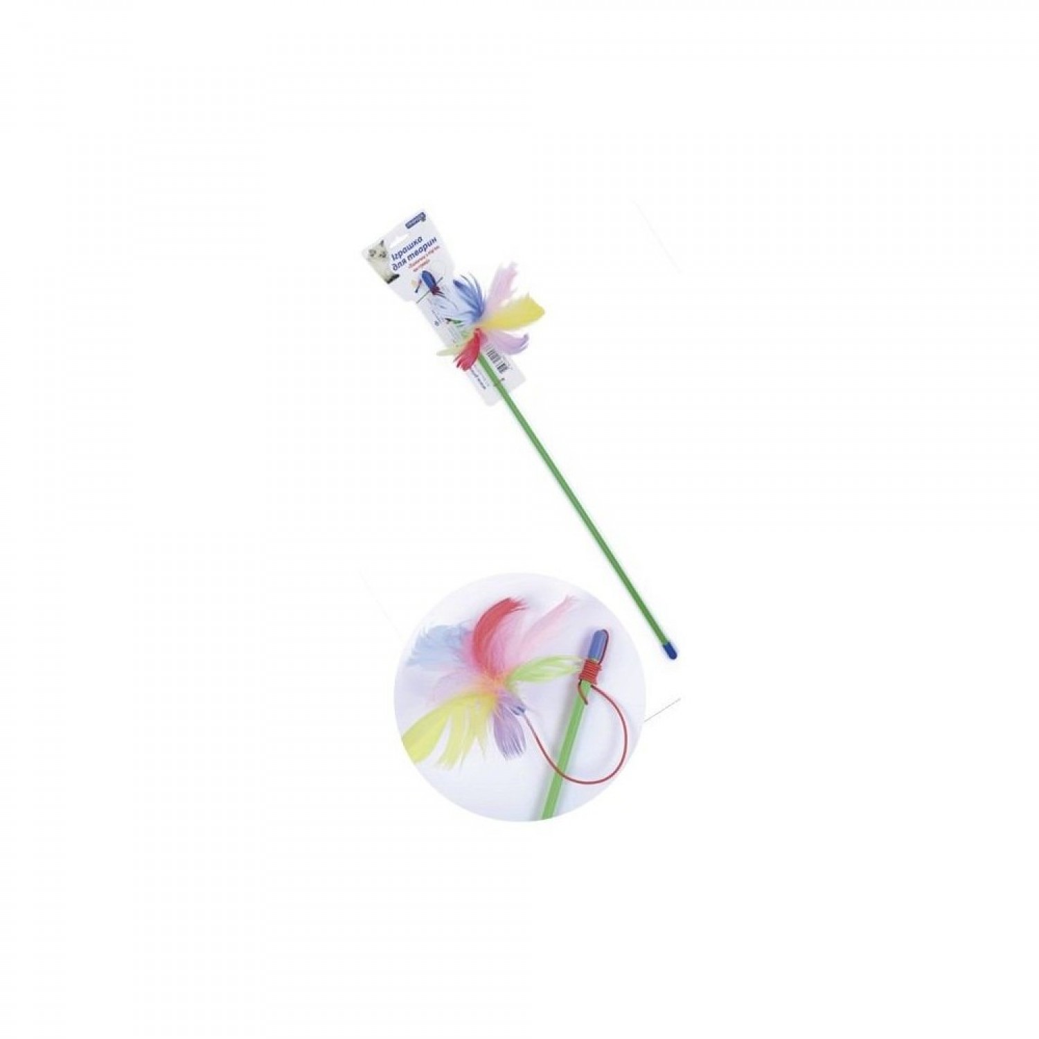 Природа іграшка-вудка для котів "Вудка з пір'ям на резинці".