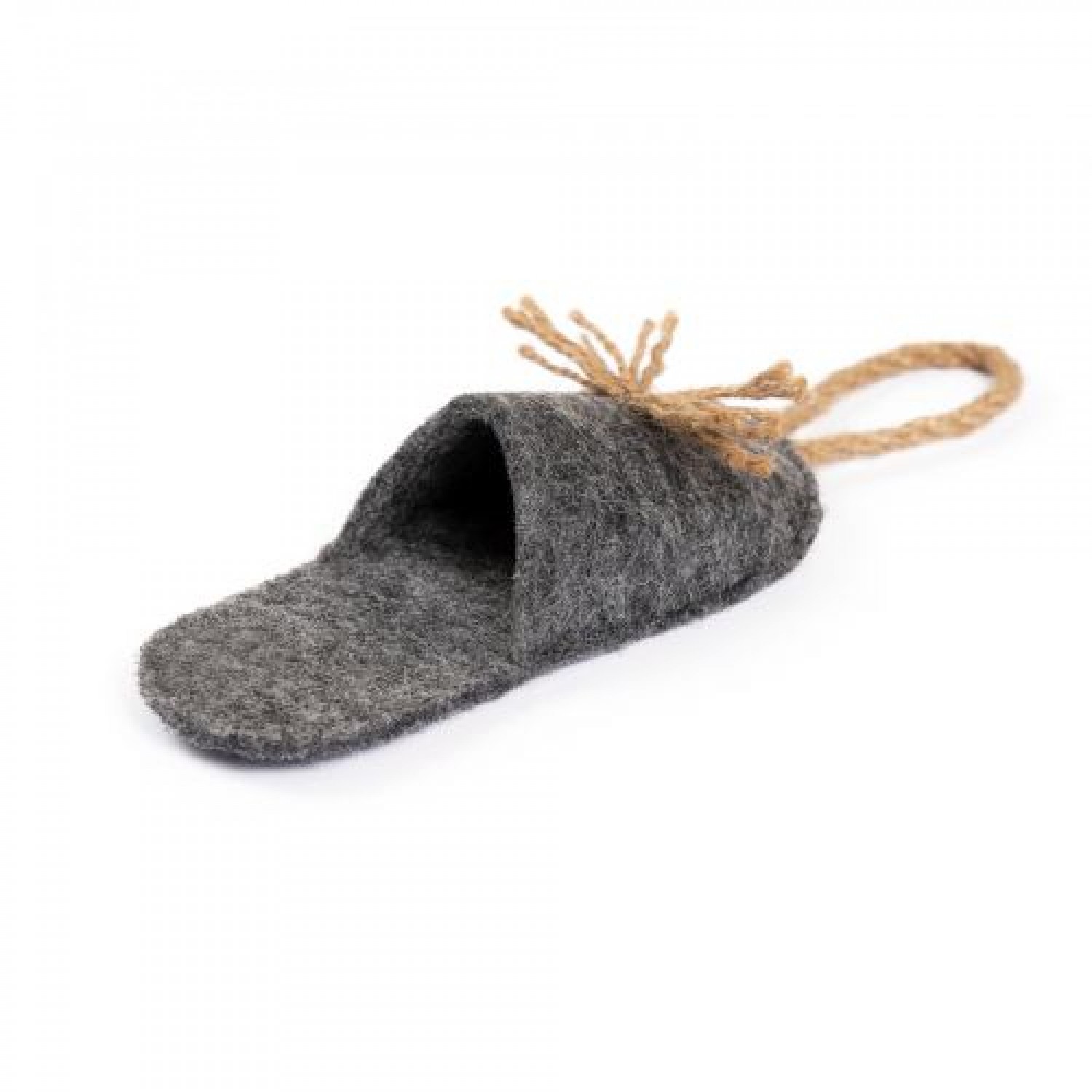 М’яка повстяна «Пантофля з канатом» - чудова забавка для цуценят і невеликих собак, бо її можна носити із собою, гризти, гратися досхочу і покласти поруч у лежачку. Якщо хочете відволікти улюбленця від свого взуття, запропонуйте йому цю іграшку.