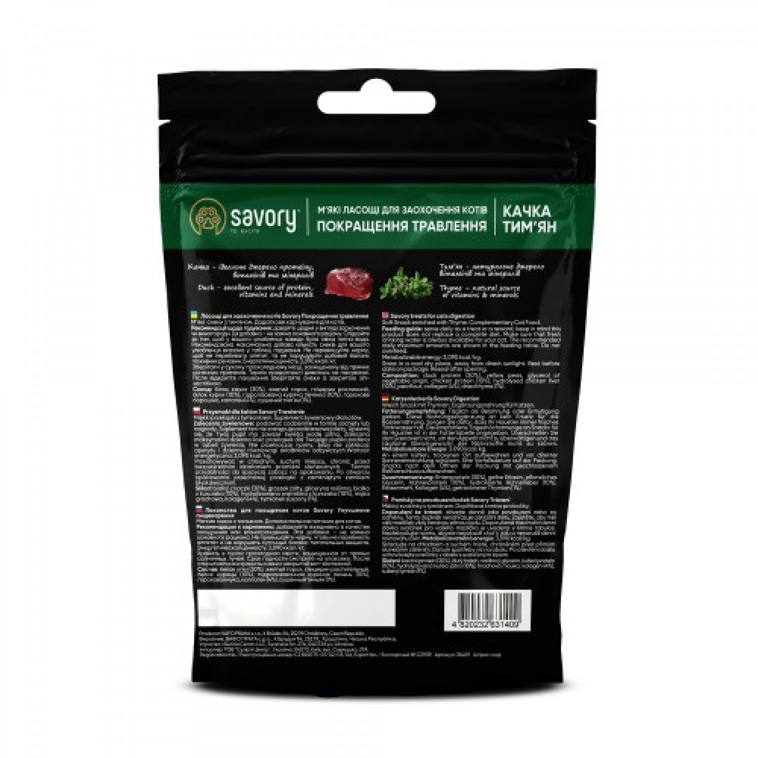 Savory м'які ласощі для котів з качкою та чебрецем.