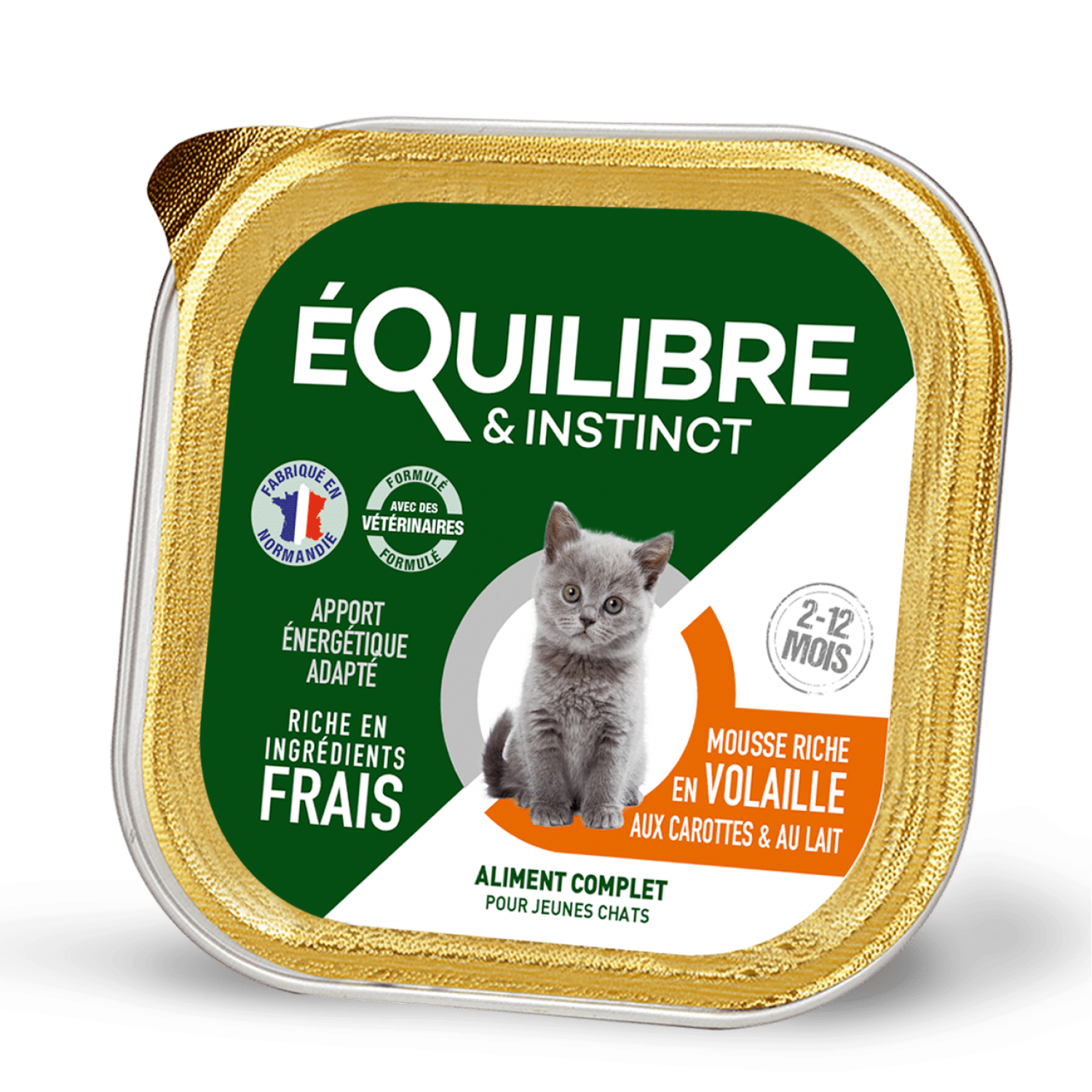 Мус Equilibre & Instinct із м'ясом птиці забезпечує кошеня енергією відповідно до його потреб у період зростання.