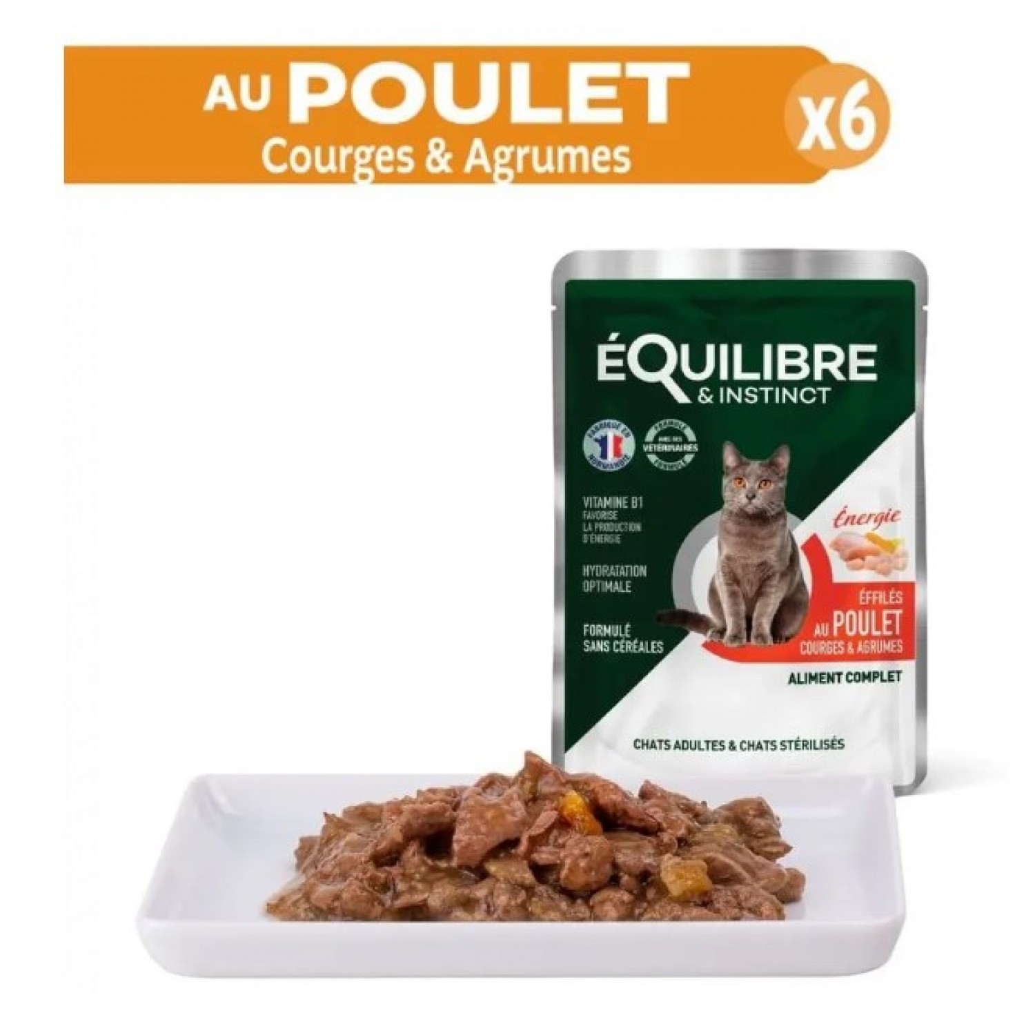 - Шматочки в соусі Equilibre & Instinct для дорослих котів із куркою, гарбузом і цитрусовими.