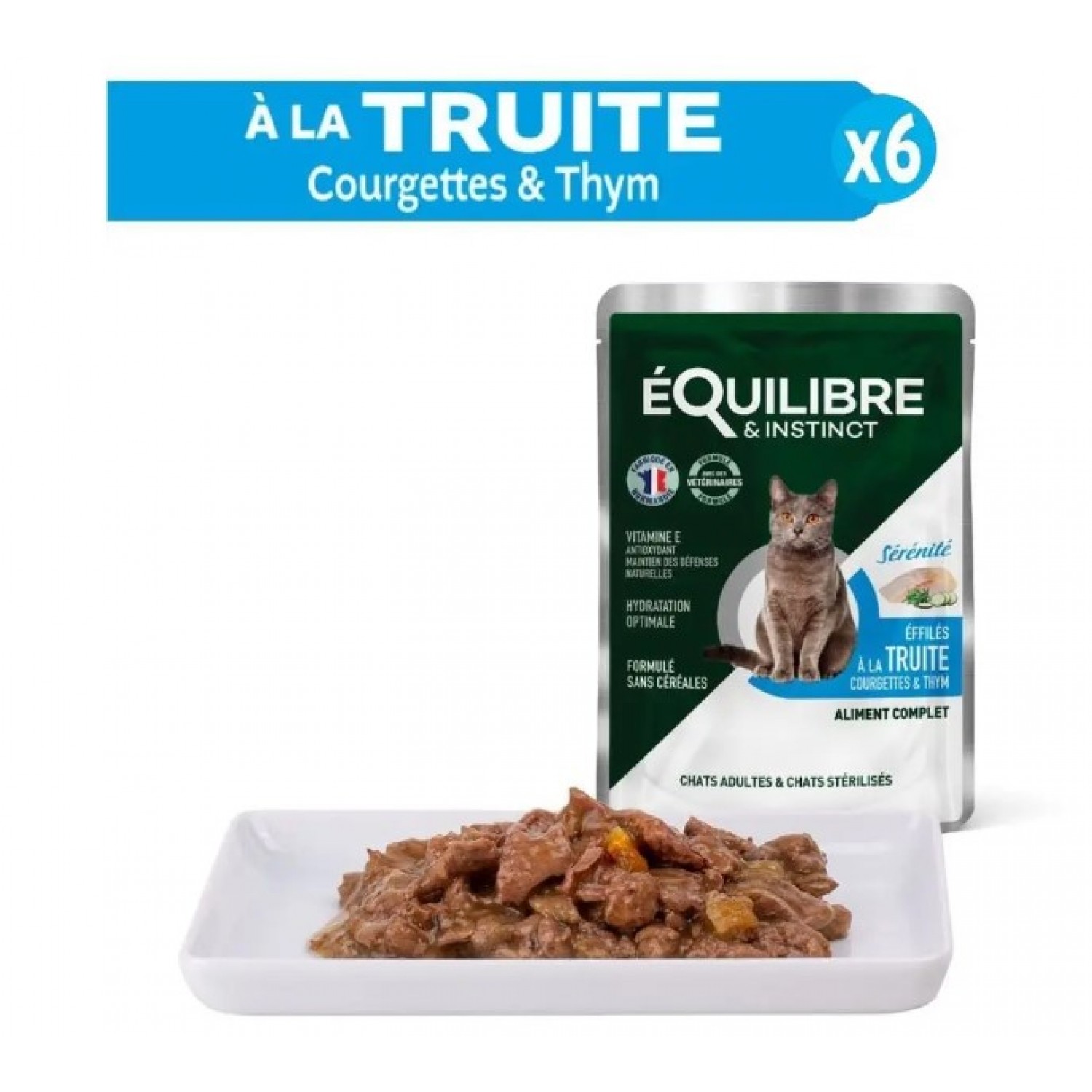 - Шматочки в соусі Equilibre & Instinct для дорослих котів із фореллю, кабачком і чебрецем.