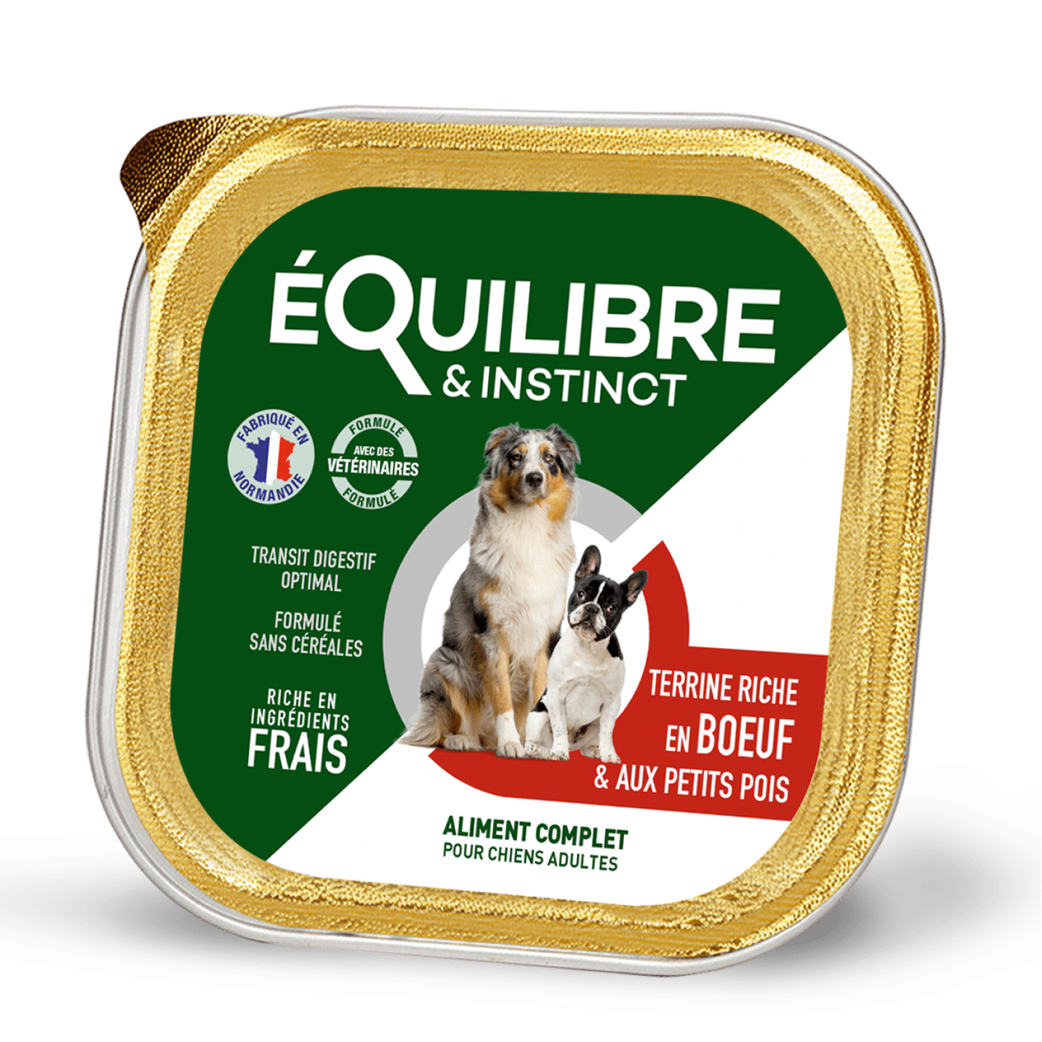 Equilibre & Instinct паштет для дорослих собак з яловичиною і зеленим горошком.