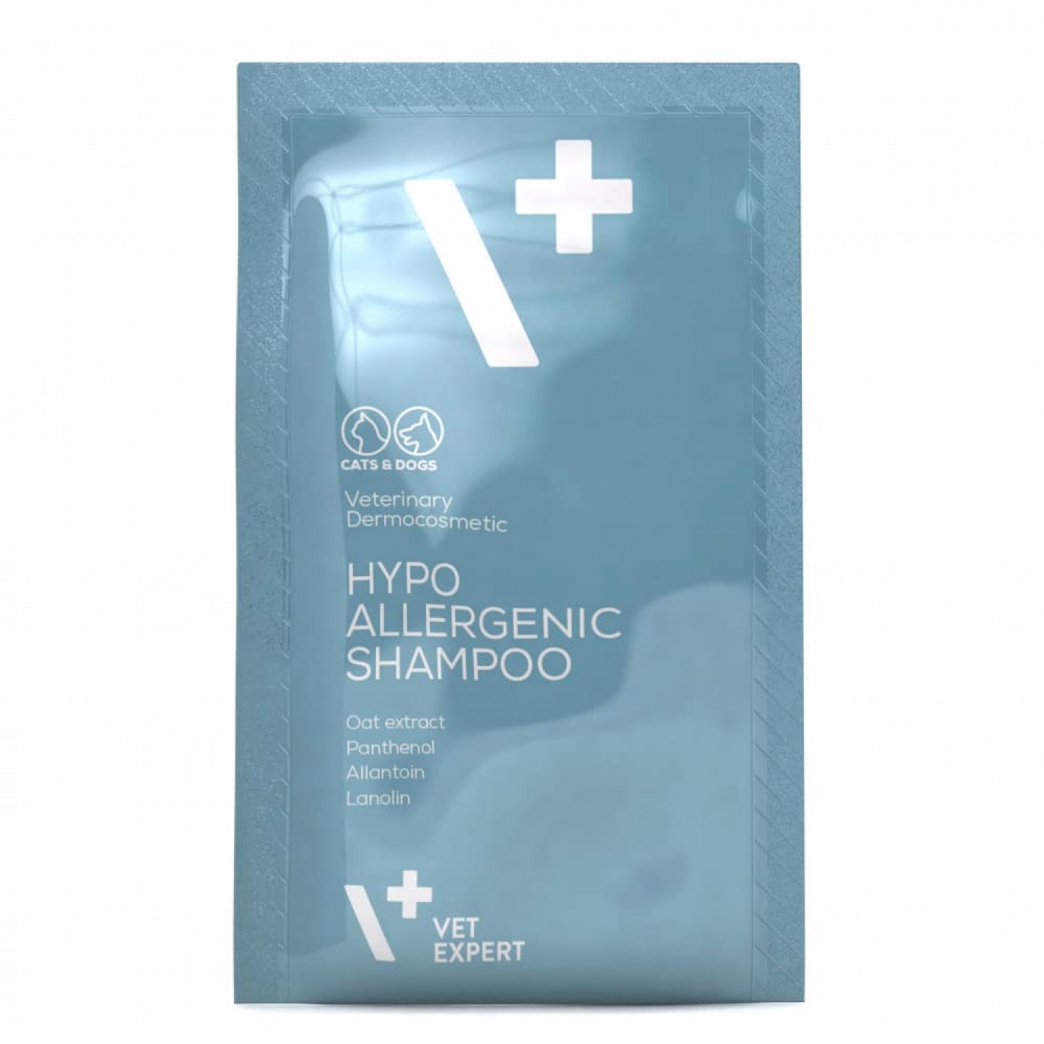 Vet Expert Hypoallergenic Shampoo (Вет Експерт Шампунь гіпоалергенний) – дермокосметичний шампунь для тварин із чутливою шкірою, схильною до подразнення, алергії, надмірної сухості або непереносимості інших шампунів. Безпечний для тварин у період росту.