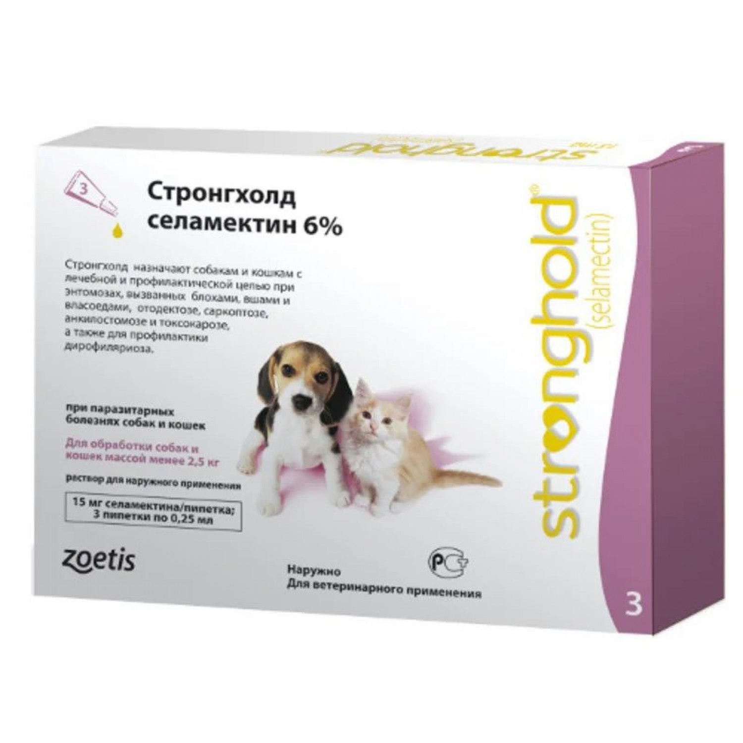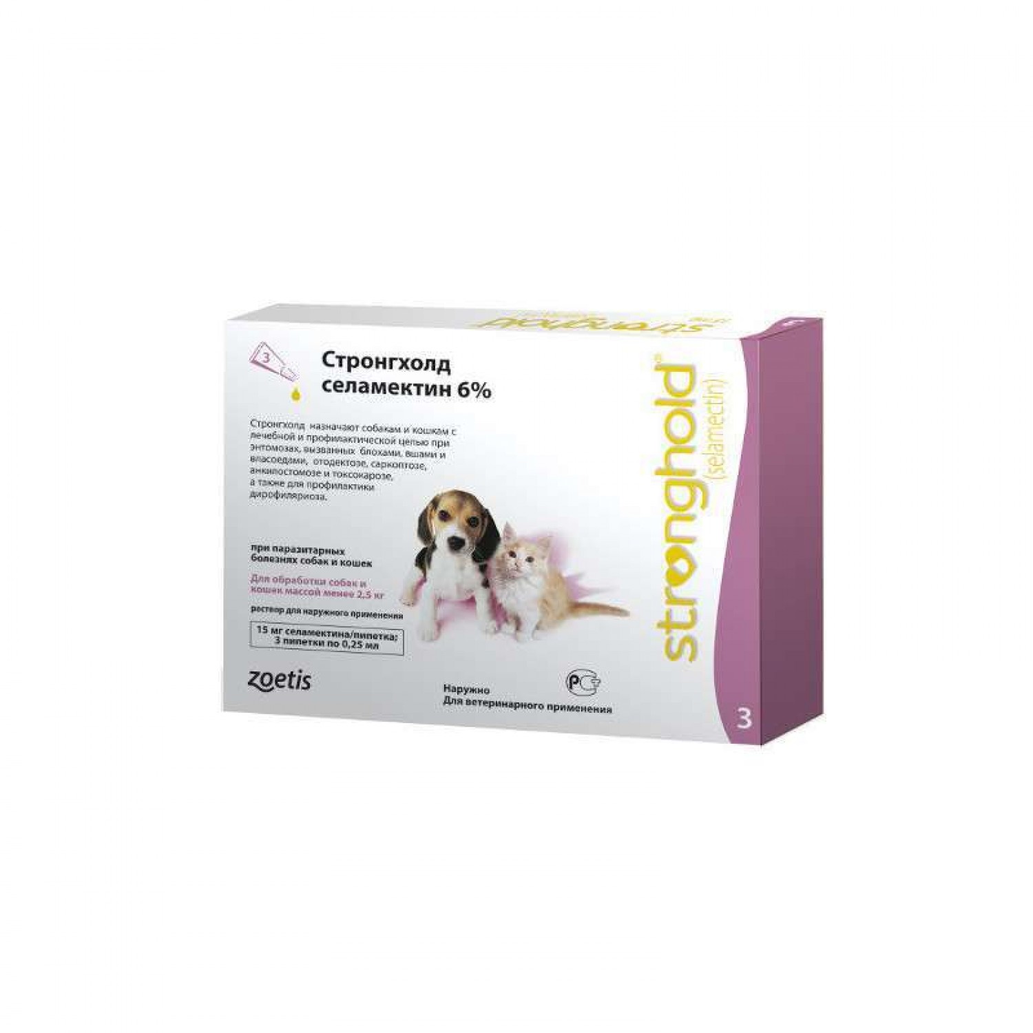 Stronghold протипаразитарні краплі для кошенят та цуценят вагою до 2,5 кг.