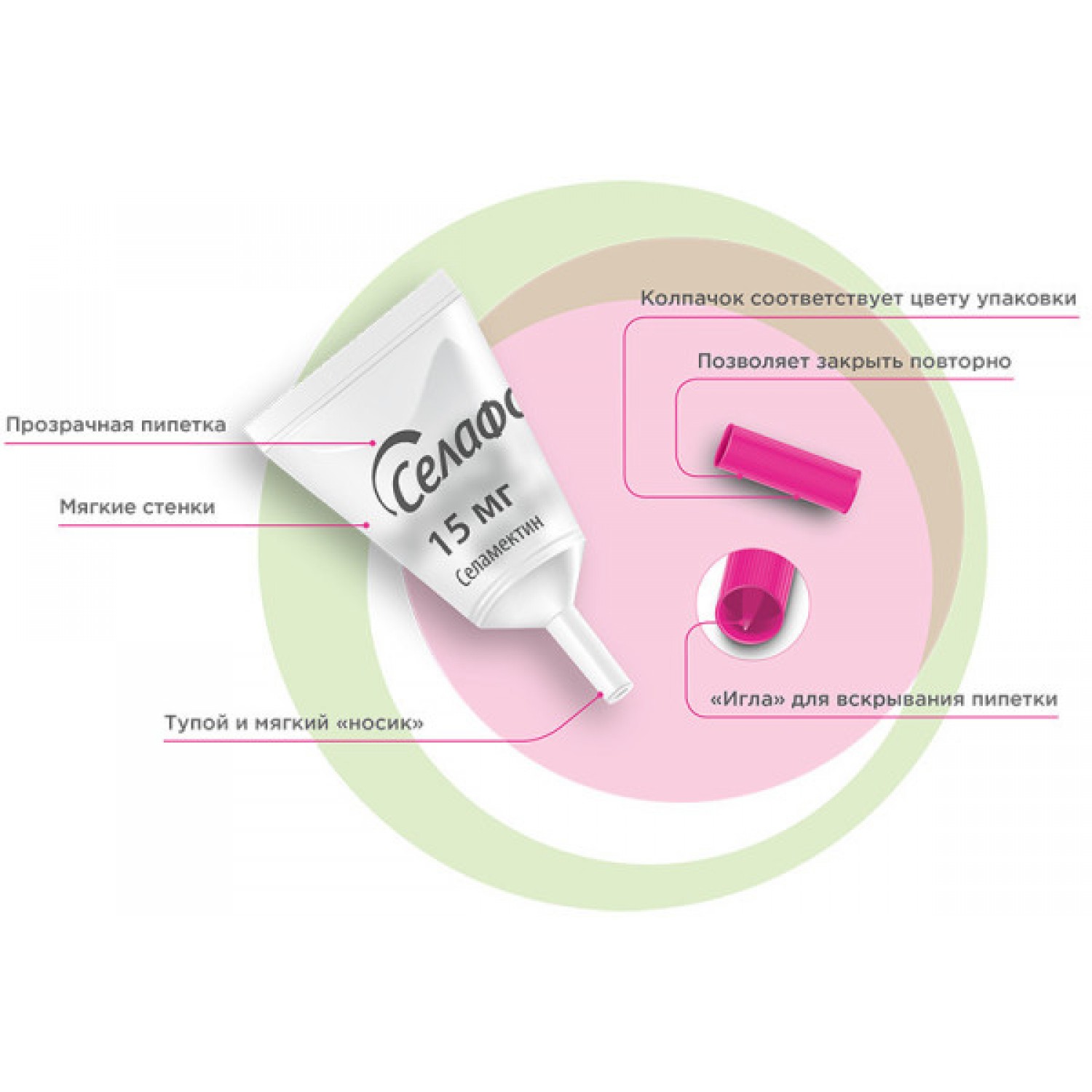 - Лікування та профілактика котів при інвазії бліх (Ctenocephalides spp. – протягом одного місяця після одноразового застосування), власоїдів (Felicola subrostratus) та при отодектозі (Otodectеs cynotis), токсокарозі (Toxocara cati), анкілостомозе дирофіляріозу (Dirofilariа immitis, Dirofilaria repens - при щомісячному нанесенні).