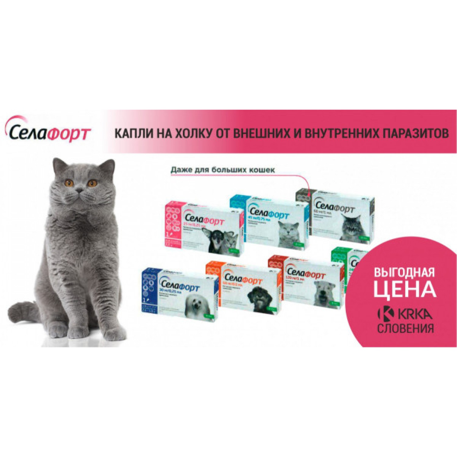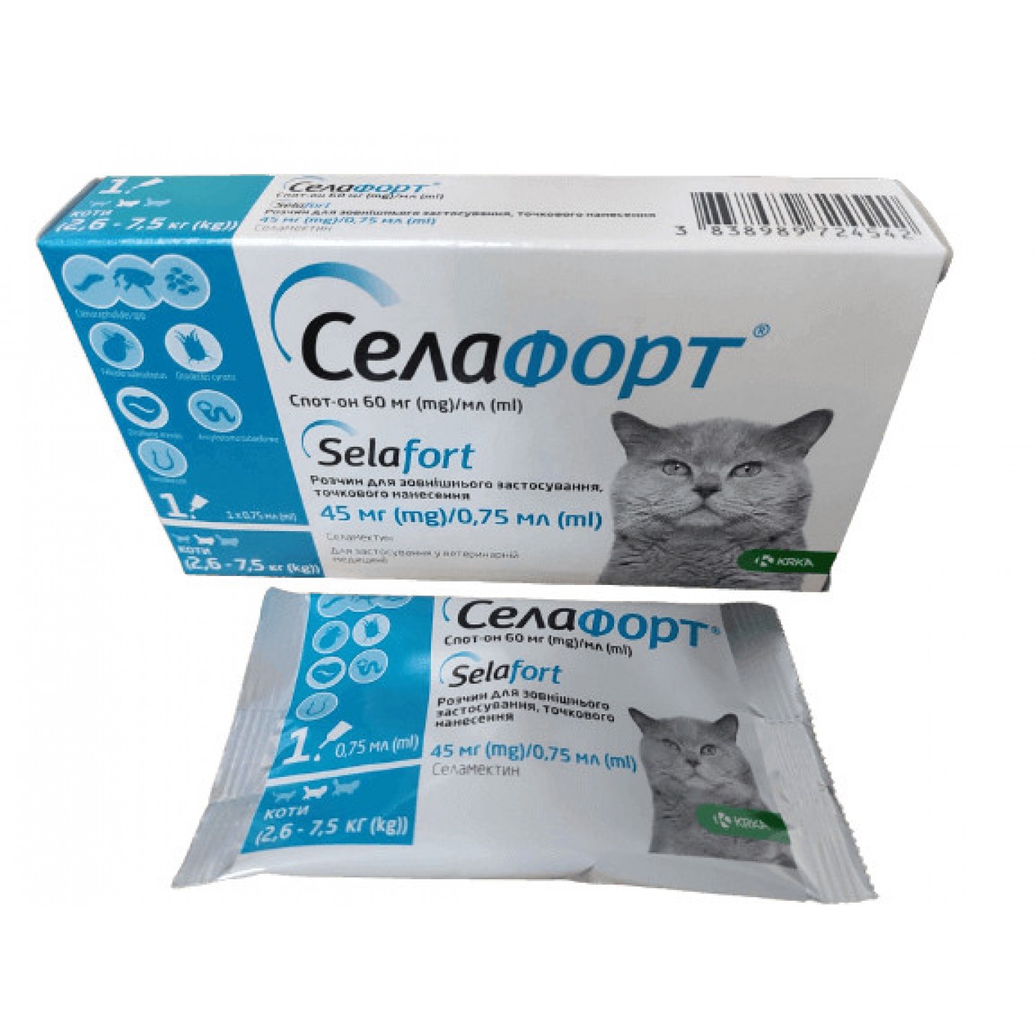 Селафорт KRKA Спот-он краплі від бліх, кліщів і гельмінтів для кішок від 2,6 до 7,5 кг.