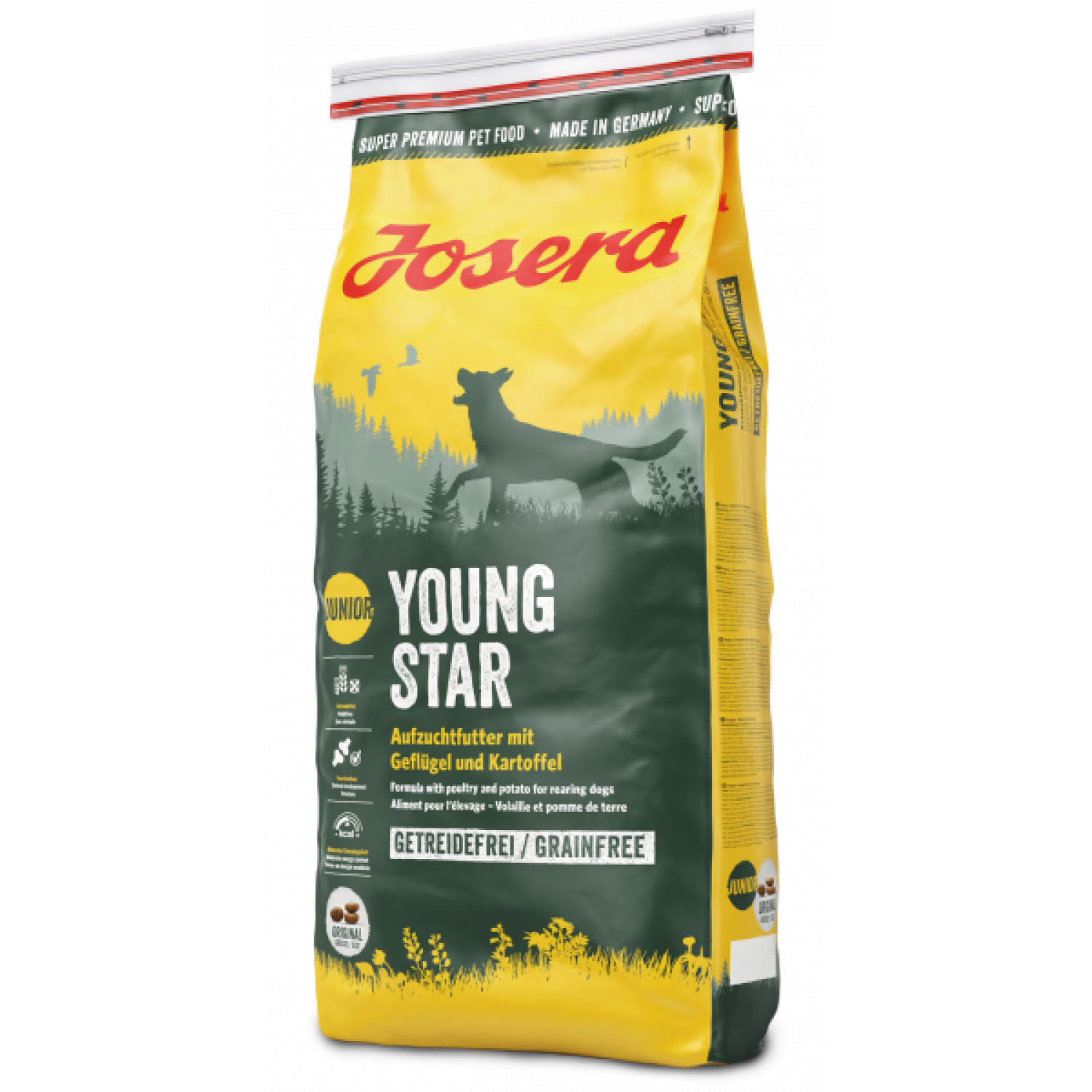 Josera YoungStar - беззерновий cухий корм суперпреміум класу для вигодовування цуценят та юніорів аж до дорослого віку. Рецепт без зернових з натуральним м'ясом птиці та особливо цінними складовими відмінно супроводжує цуценят на шляху зростання.