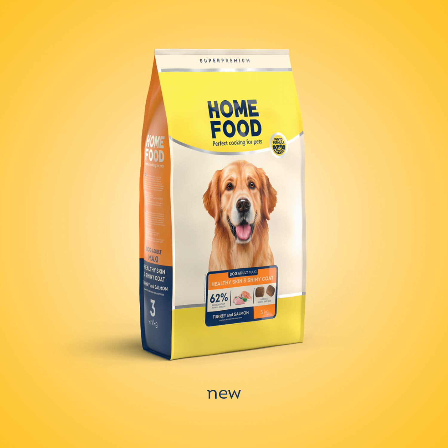 Home Food Dog Adult Maxi cухий корм для шкіри та шерсті собак великих порід "Індичка та лосось" .