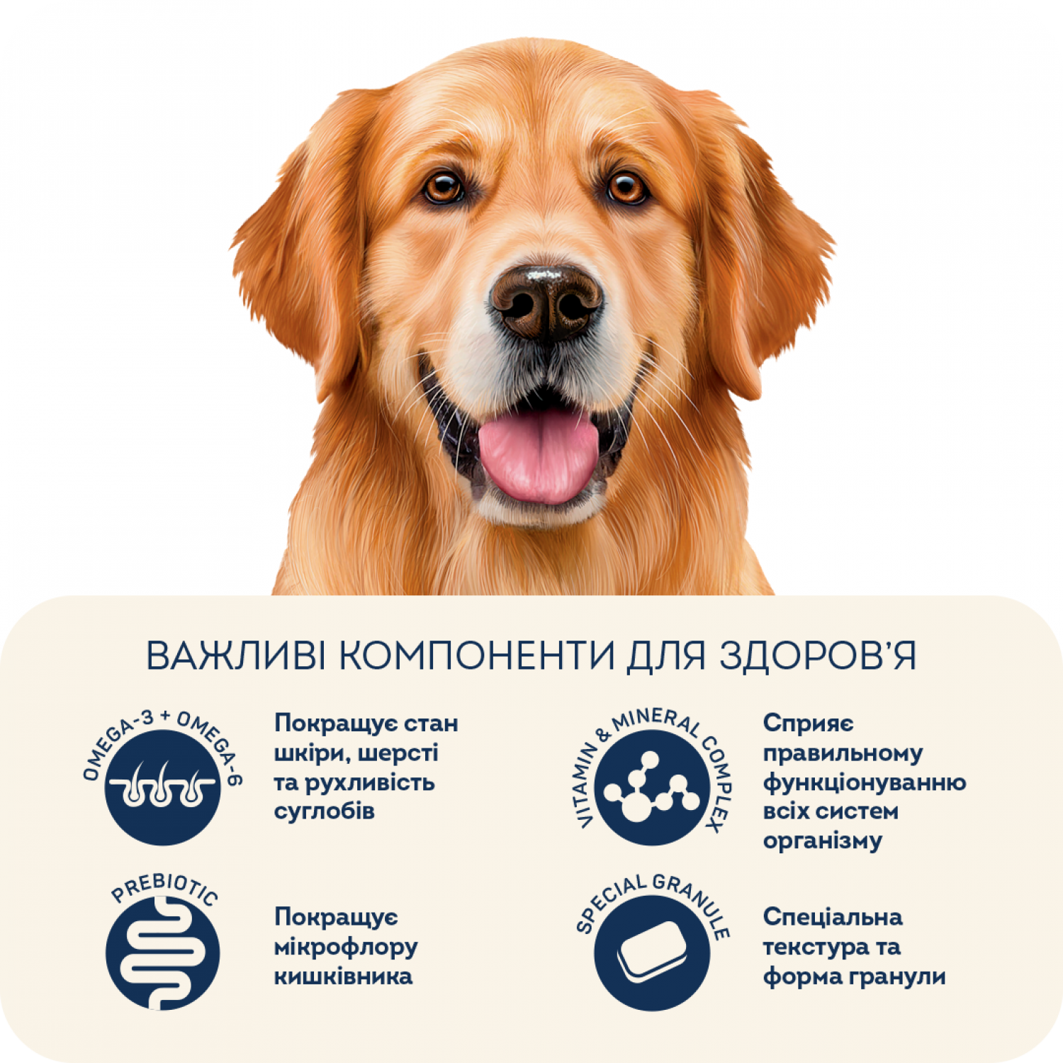 Повнораціонний безглютеновий сухий корм з лососем та індичкою для підтримання здоров'я шкіри та краси шерсті у дорослих собак великих порід. Є збалансованим харчуванням, яке необхідне улюбленцеві для відмінного здоров'я при особливих потребах його організму.