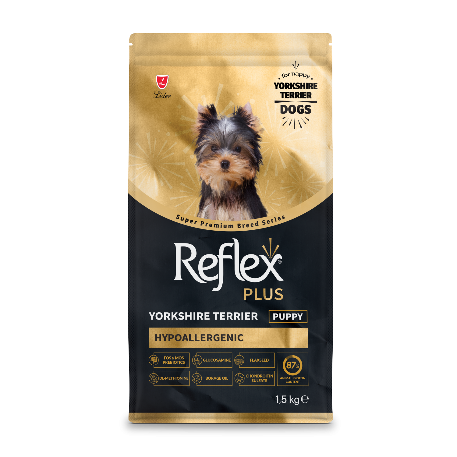 Reflex Plus Yorkshire Terrier Puppy повноцінний та збалансований сухий корм для цуценят йоркширського тер’єра від 2 до 10 місяців.