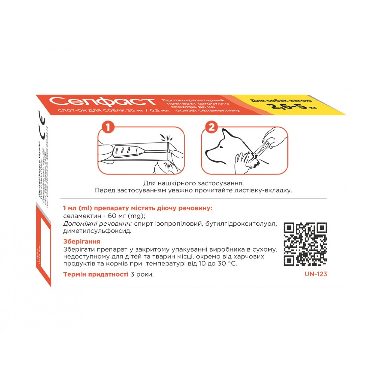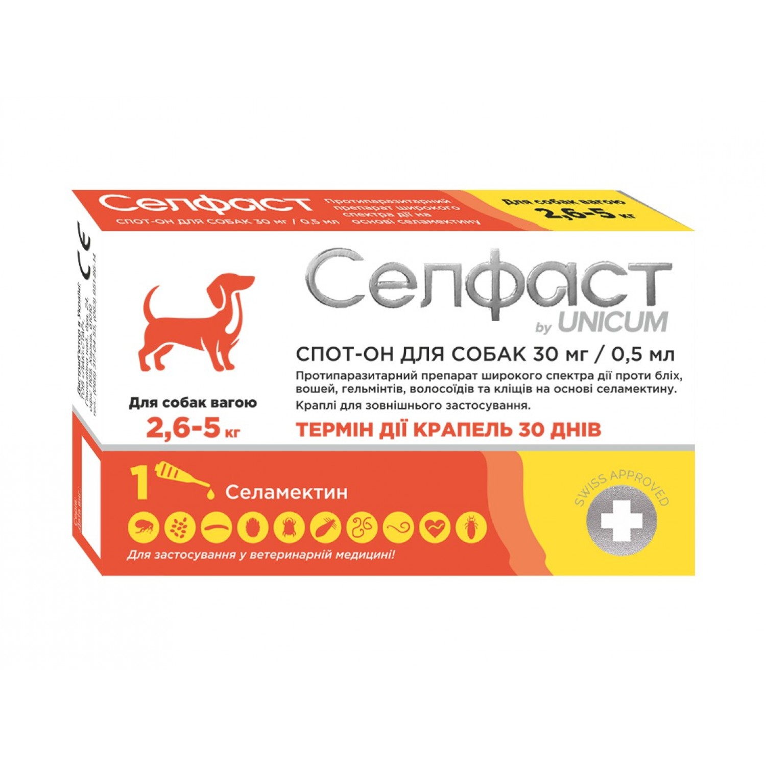 Unicum Селфаст краплі на холку від бліх, кліщів та гельмінтів для собак 2,6-5 кг (селамектин)