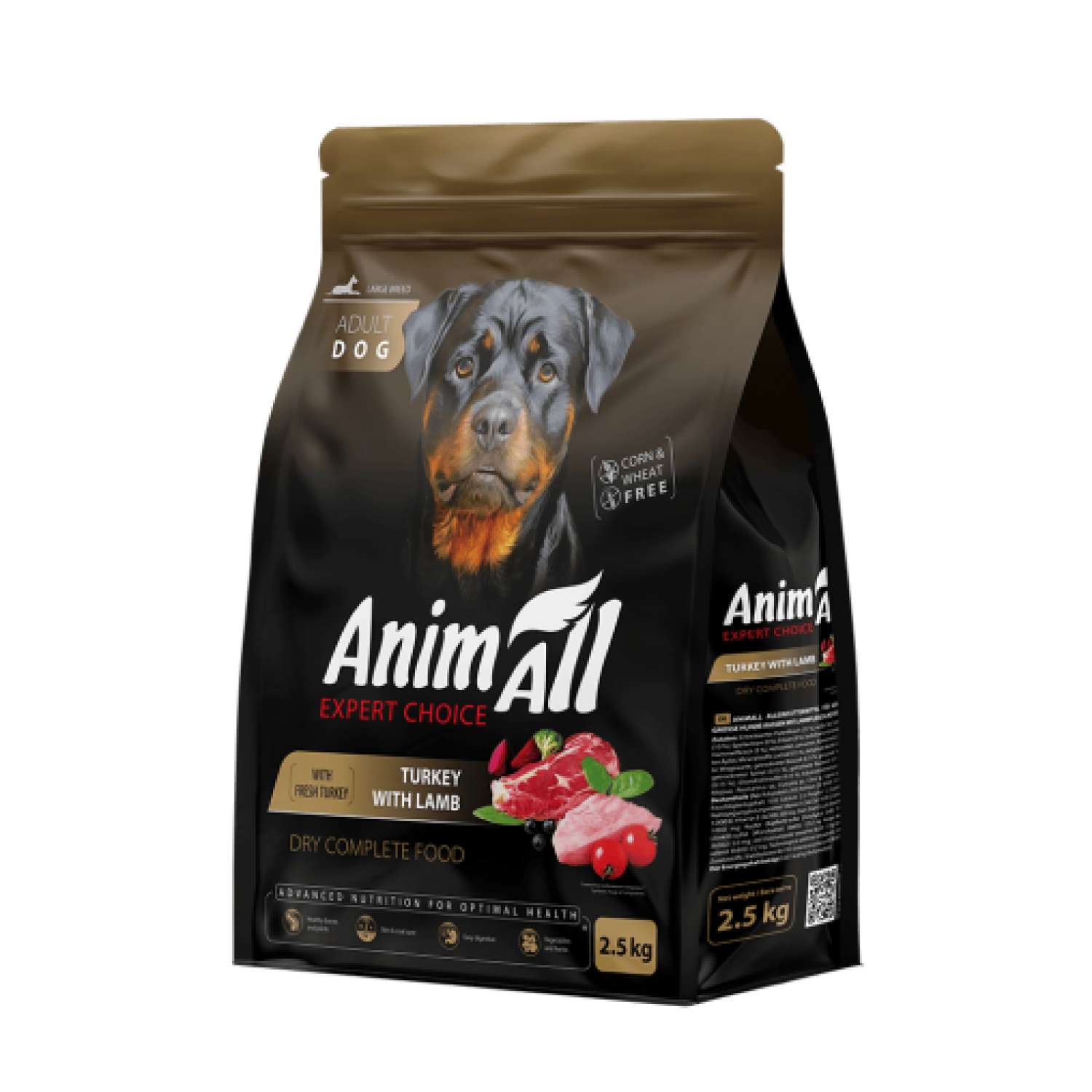 AnimAll сухий корм для дорослих собак великих порід зі свіжою індичкою та ягням.