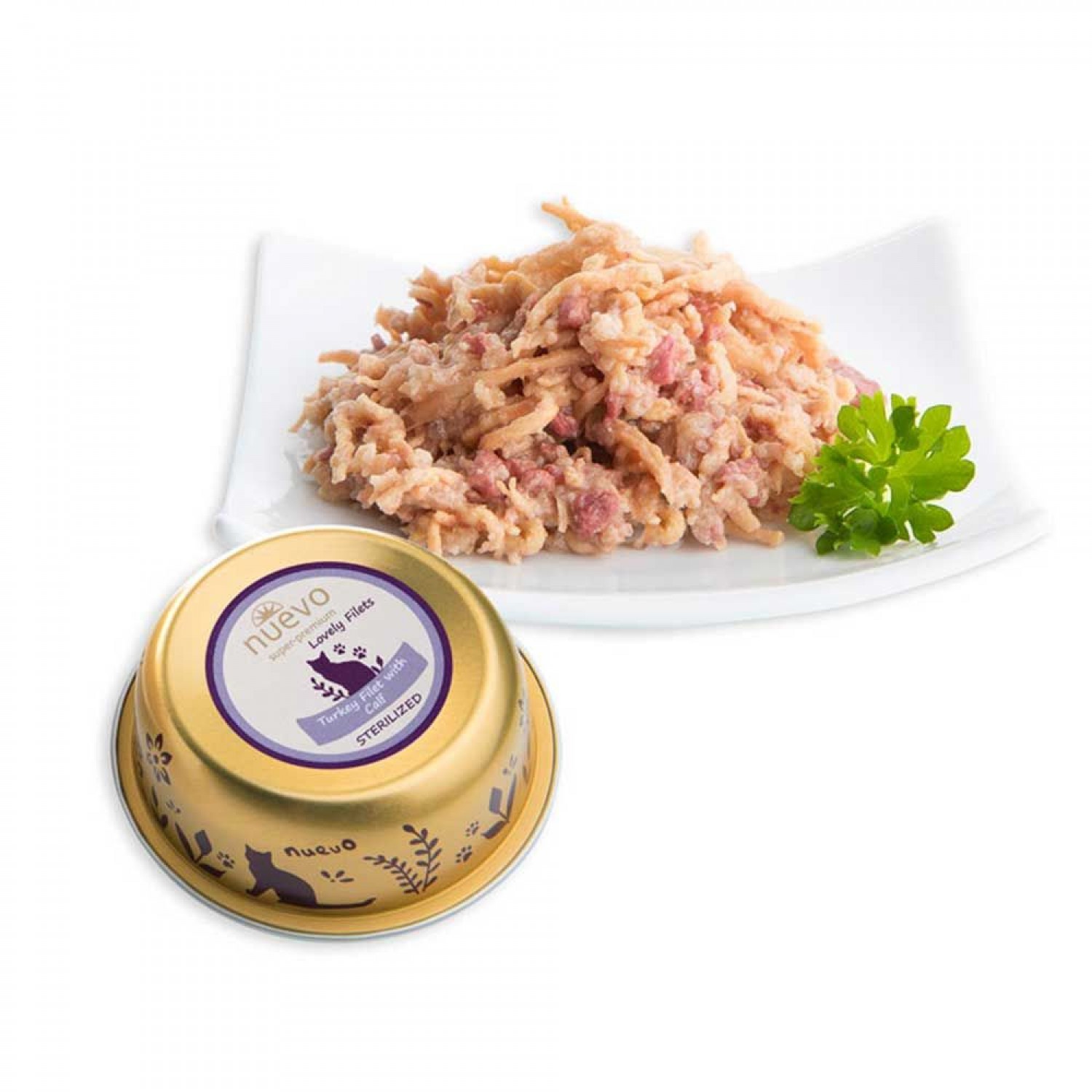 NUEVO Lovely Filets STERILIZED вологий корм для стерилізованих котів з індичкою та телятиною.