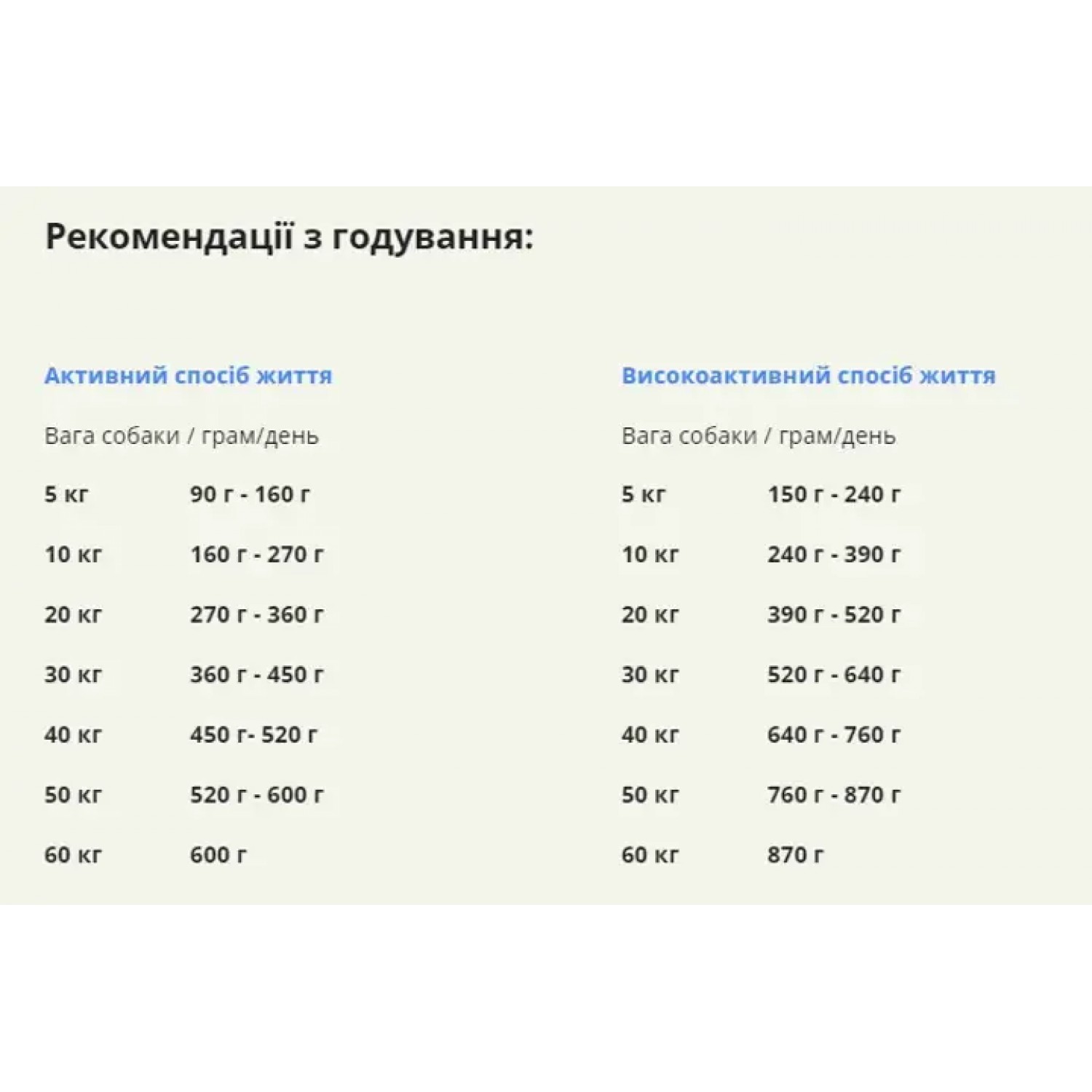 Вага собаки, кг Норма годування, г/добу